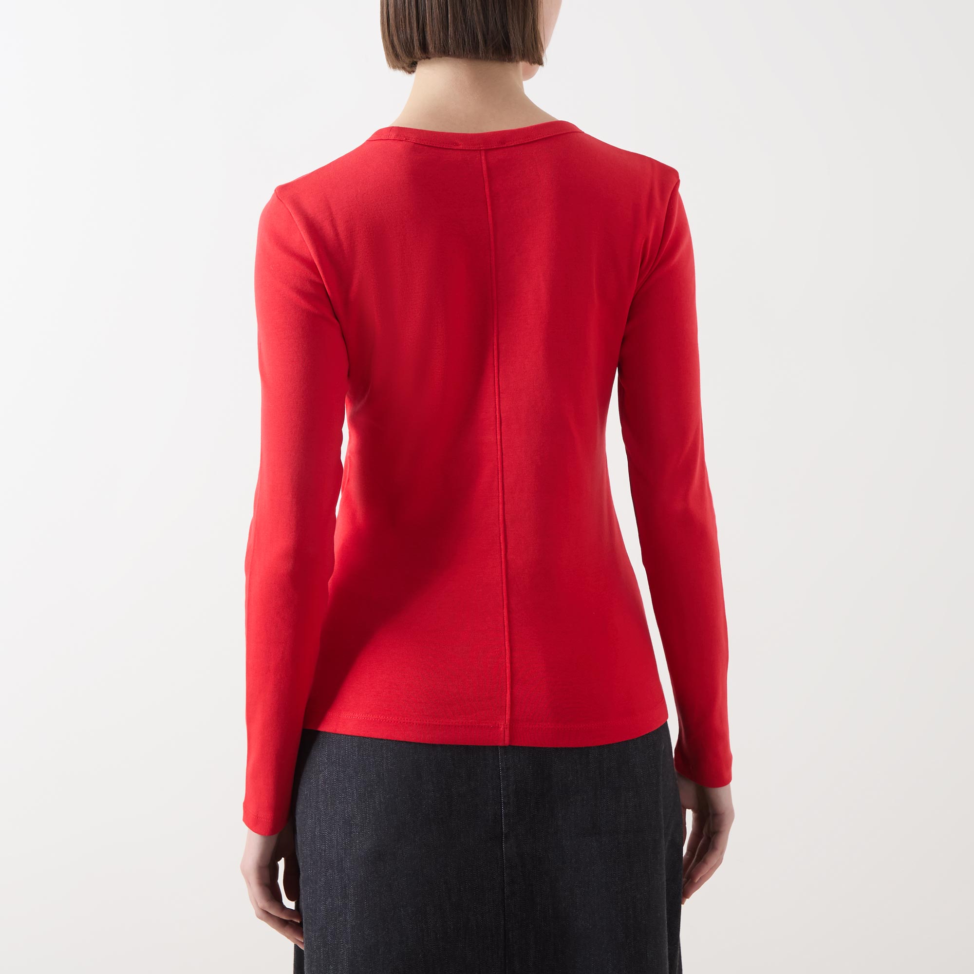 - Round neckline, long sleeves, straight hemline, raised seam detail to the back