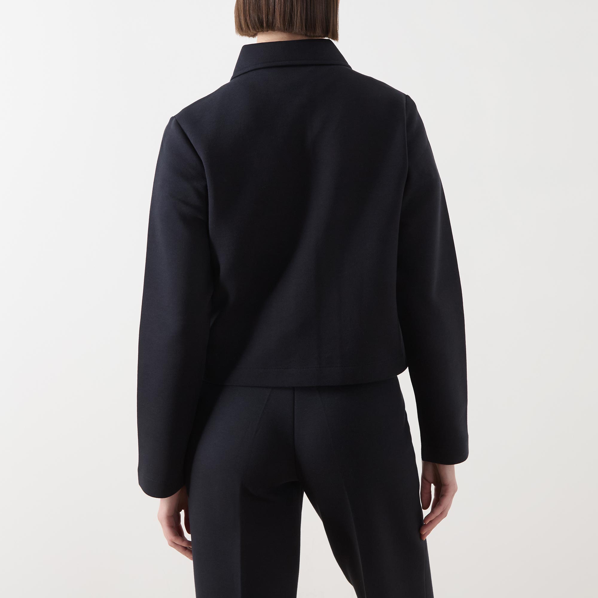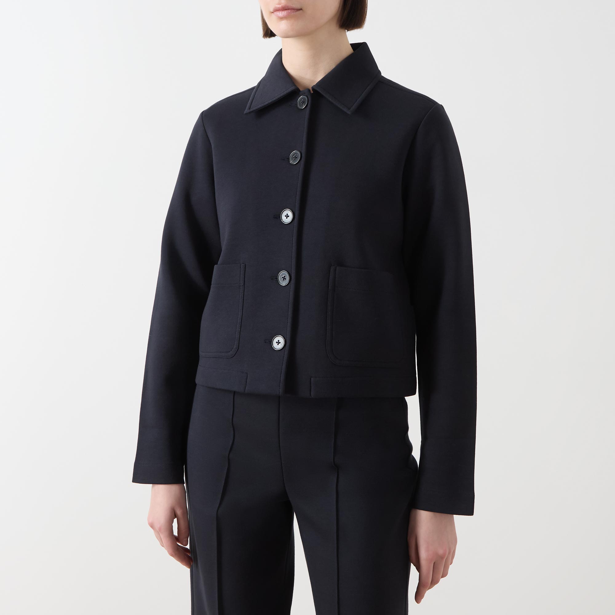- Flat collar, button fastening, long sleeves, patch pockets, straight hemline, stretch-fused fabric