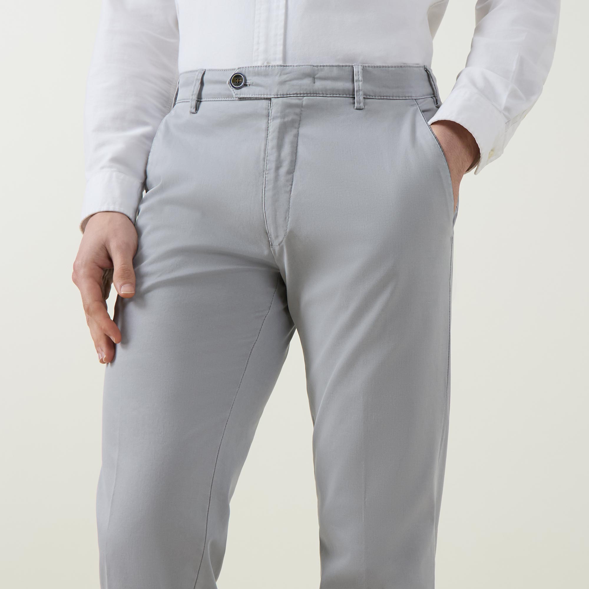 - Mid rise, straight leg, belt loops, concealed zip fly and button fastening, two side entry pockets, two rear welt pockets with button fastenings, clean hems, pressed creases, tonal stitching
