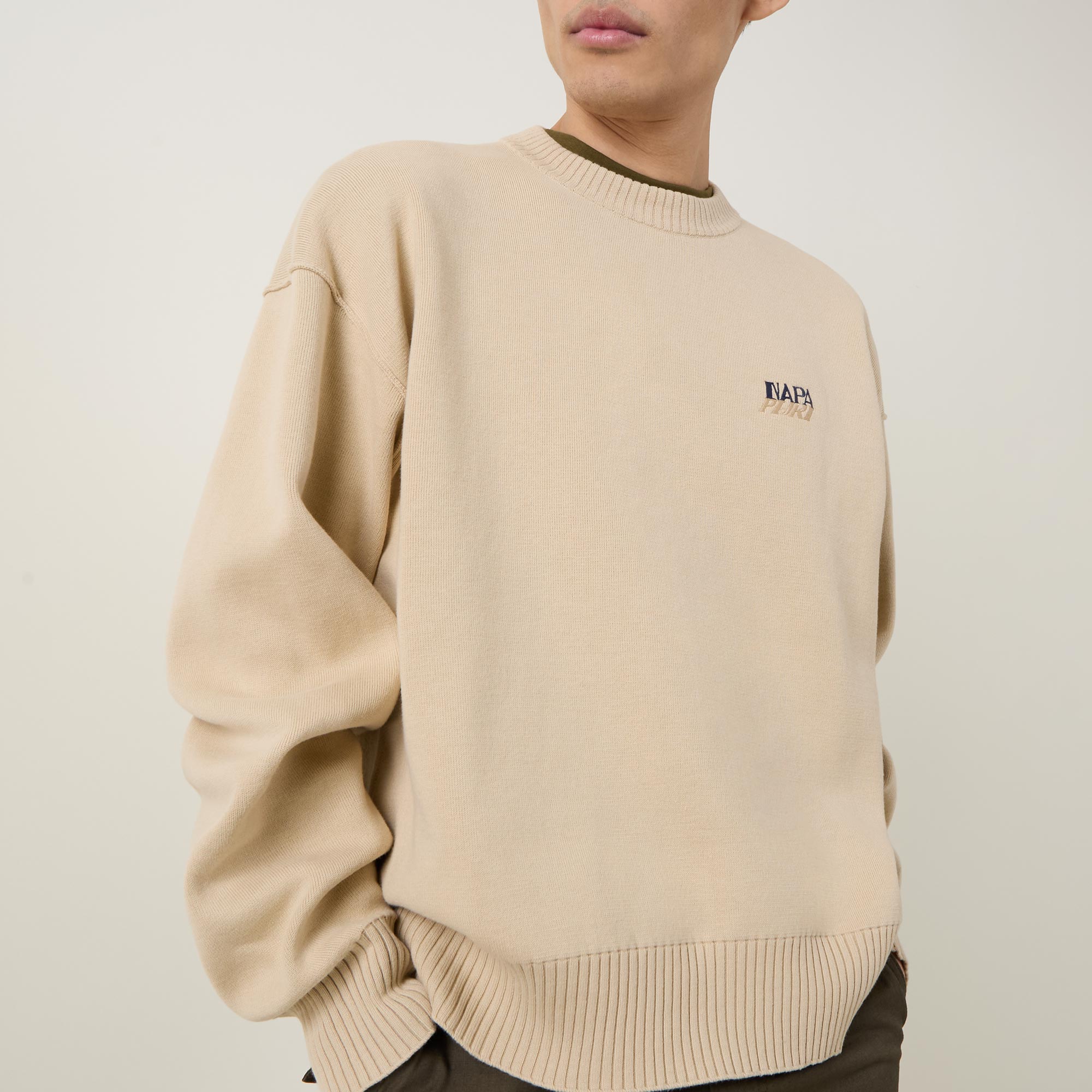 - Crew neckline, long sleeves, straight hemline, ribbed trims, logo detail
