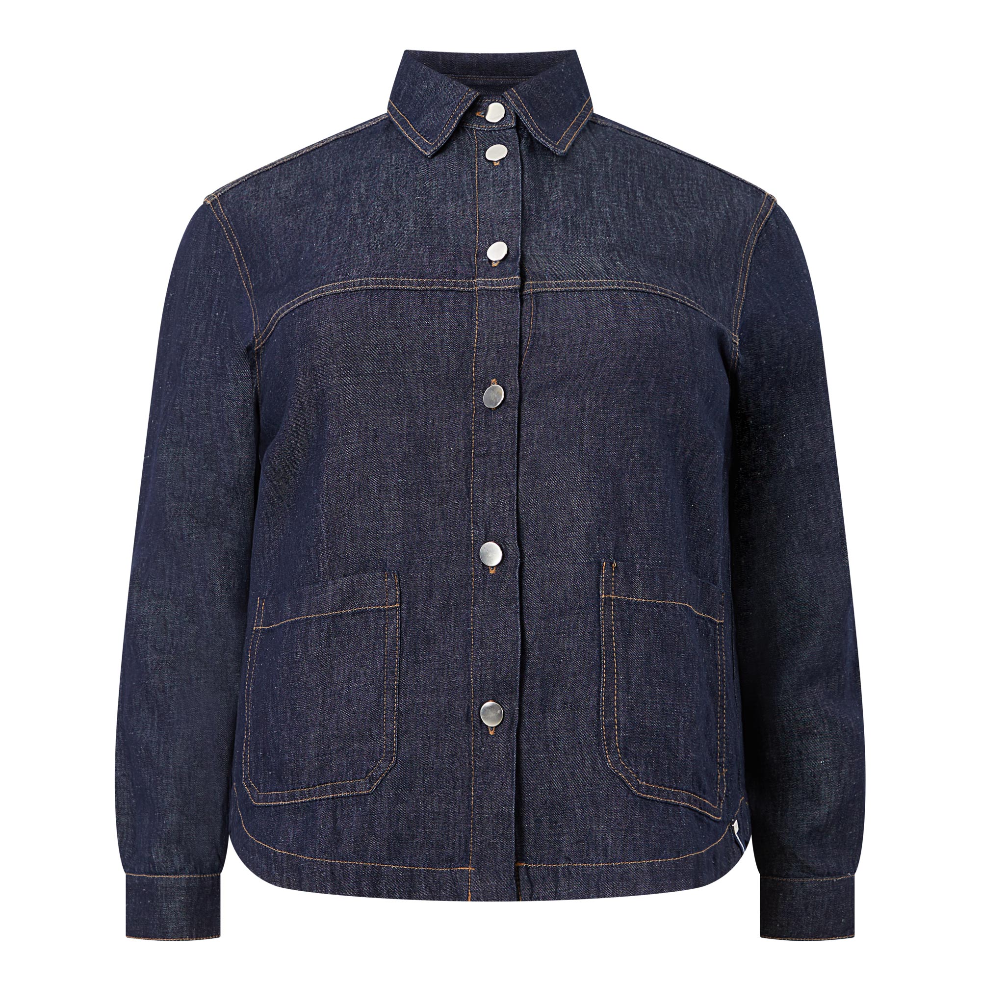 - Collared neckline, button fastening, long sleeves, buttoned cuffs, rounded hem, patch pockets, tobacco-toned stitching