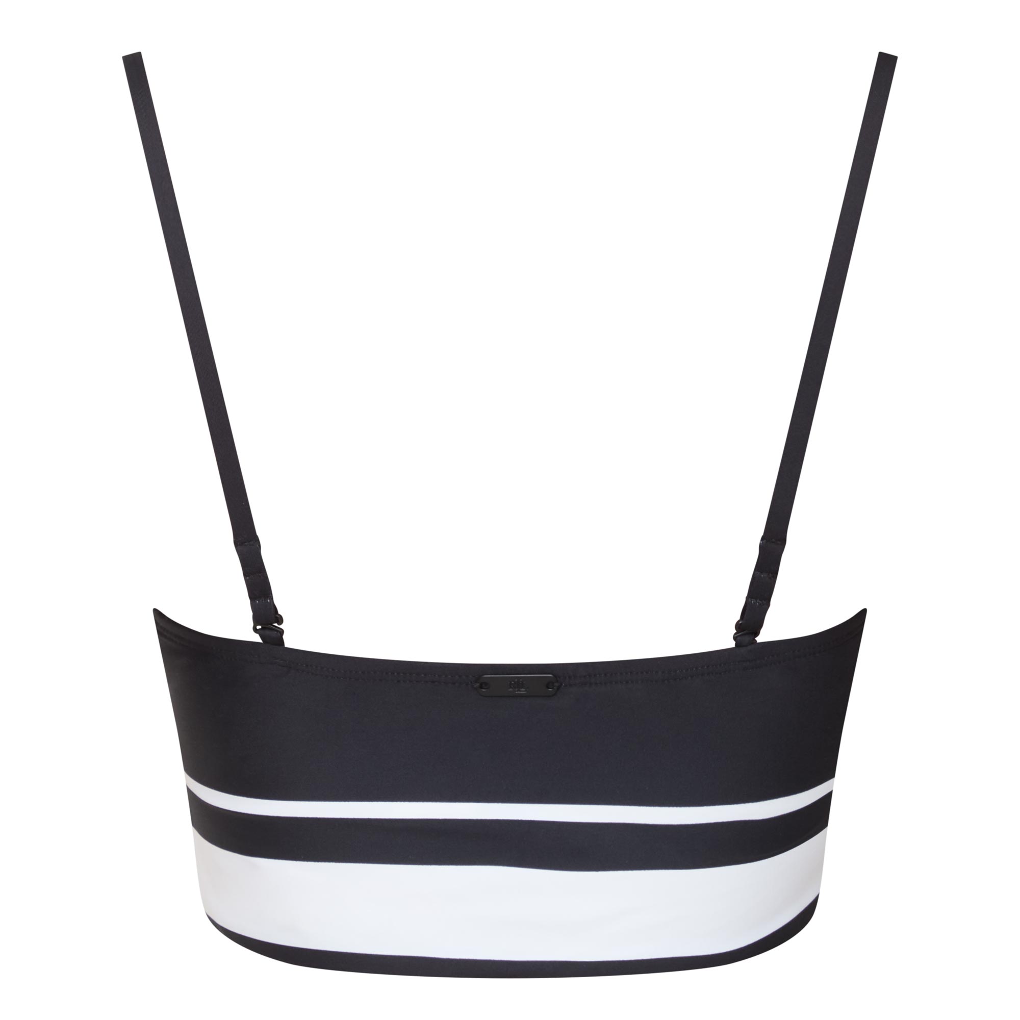 - Square neckline, fine detachable and adjustable straps, rear logo plaque, contrast stripe detailing, two-tone finish