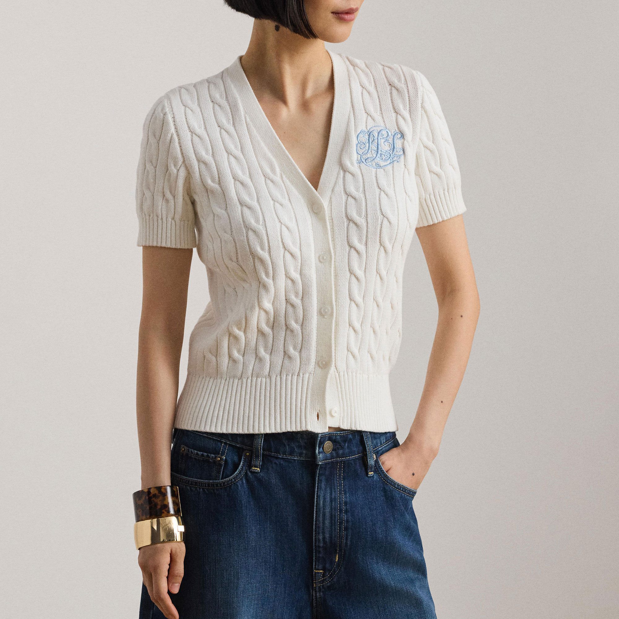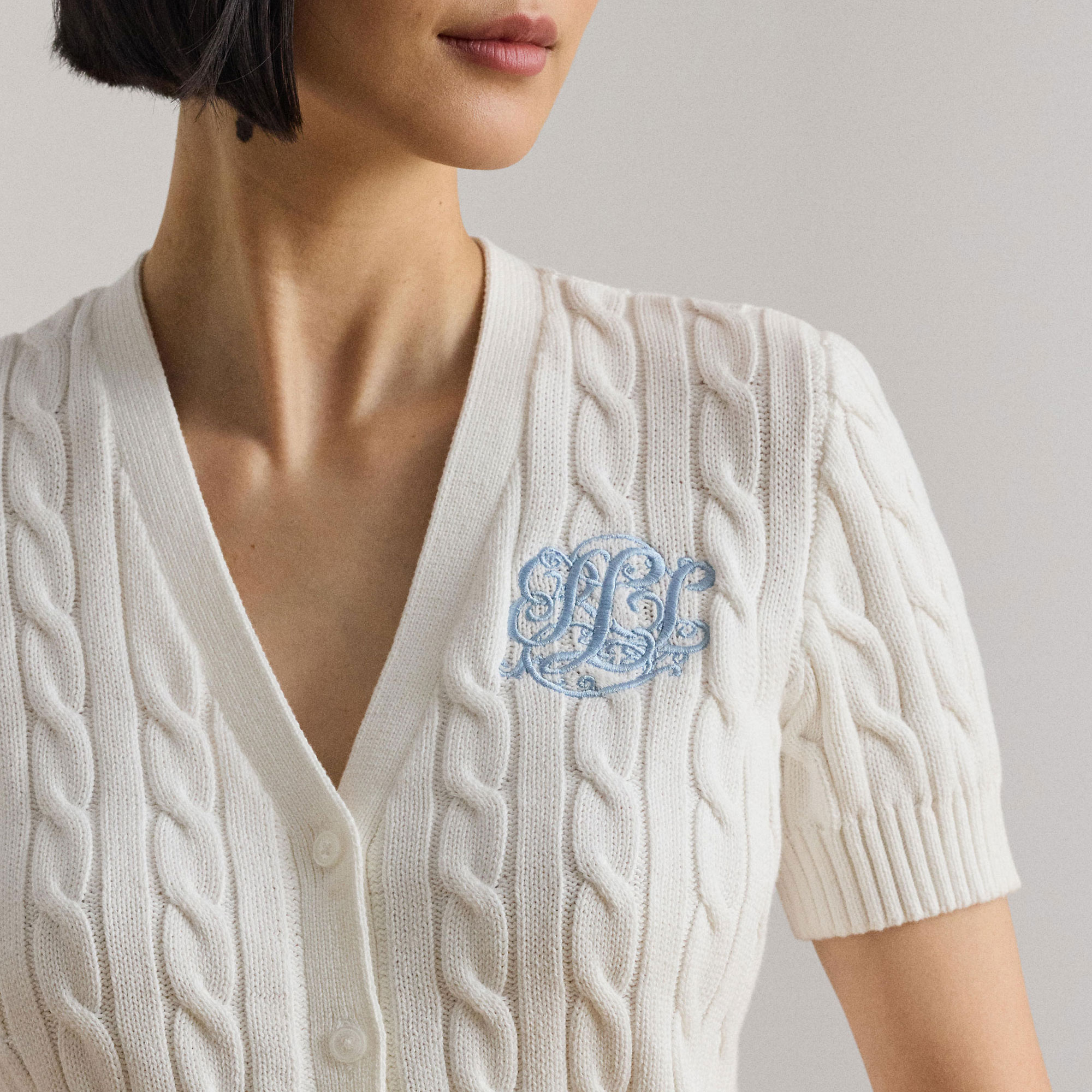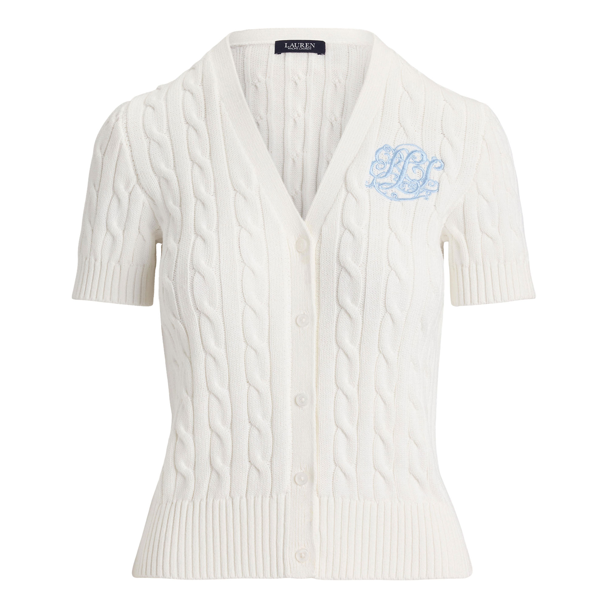 LAUREN Script Logo Cable Knit Cardigan