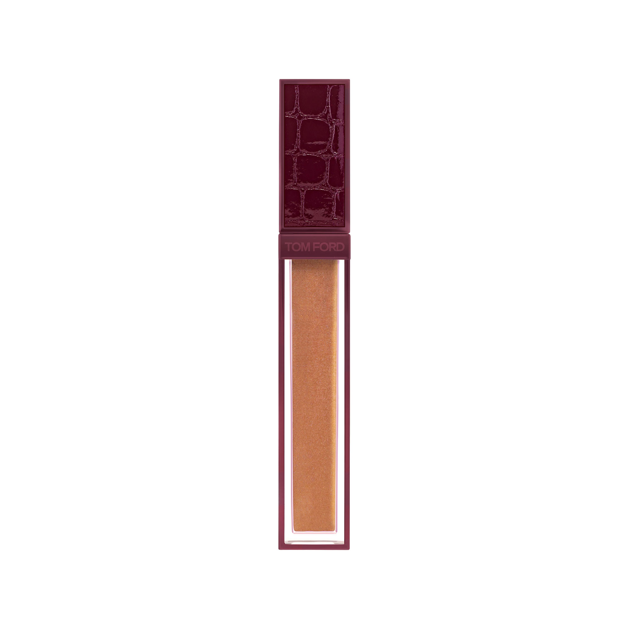 Description: A limited-edition Gilded Gloss in audacious croc-inspired packaging. Encapsulated pigments transform on application—first sweeping on golden, then shifting into a rose-peach glow with iridescent shimmer.