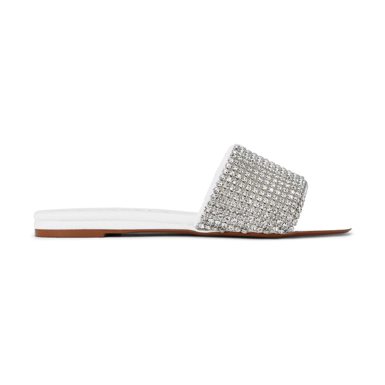 - Open toe, embellished wide foot strap, padded insole, slip-on style