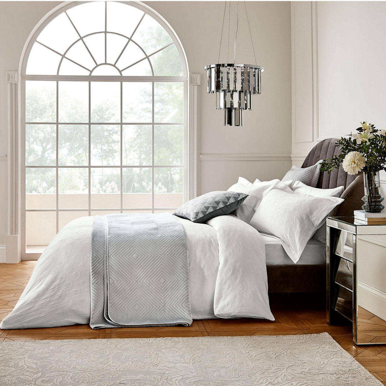 This statement design perfectly captures that distinctive Art Deco style. The instantly recognizable sunburst pattern decorates a cotton rich matelassé weave. Add layers of rich ornamentation by layering the Opulence embossed velvet throw and shams to the bed and complete the look with the Etré embroidered cushion. Duvet set includes pillowcase(s)