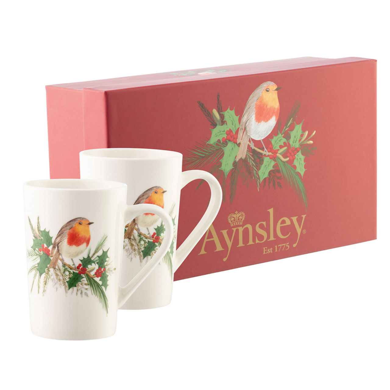 AYNSLEY Robin Latte Set of Two Large Mugs