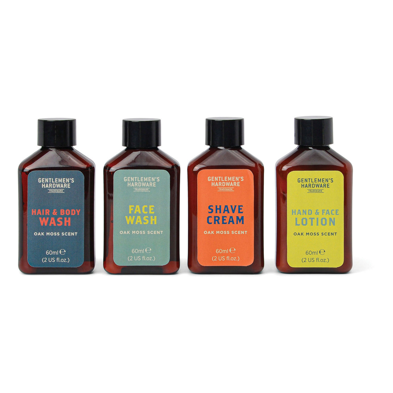 - Reusable tin, Oak Moss fragrance, includes 3-in-1 wash, shaving cream, face wash, and hand & face lotion