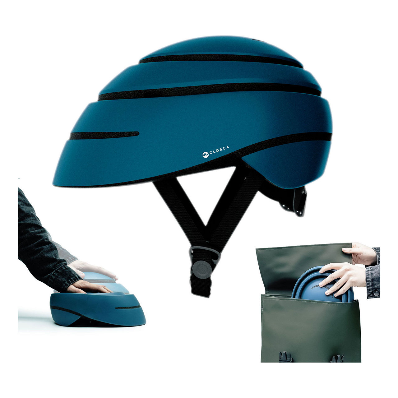 We save lives by redesigning the way helmet safety works. Closca folding helmets can only be folded when there is no interior volume and, of course, never folds in case of an accident when a head is inside. The helmet is configured by 3 pieces of polycarbonate and EPS foam that absorb impacts, these parts are joined by 4 plastic pieces with 2 stable positions: folded and unfolded. Once the helmet has a volume inside it is fixed to protect your head in case of impact in the same way as a conventional helmet.