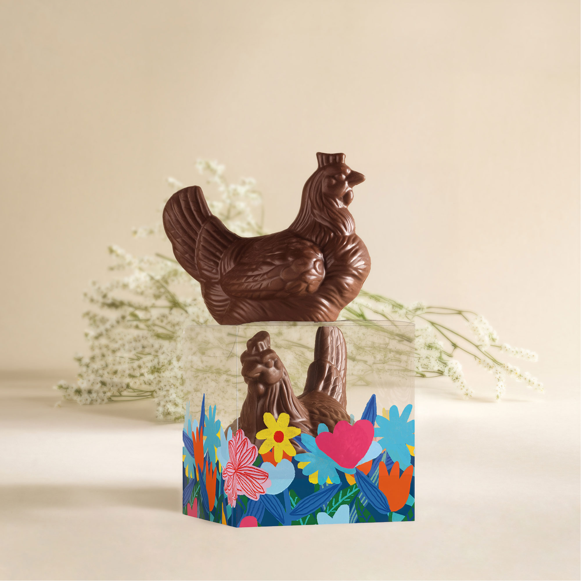 - Soft milk chocolate hen, delicious and perfect as a sweet surprise.