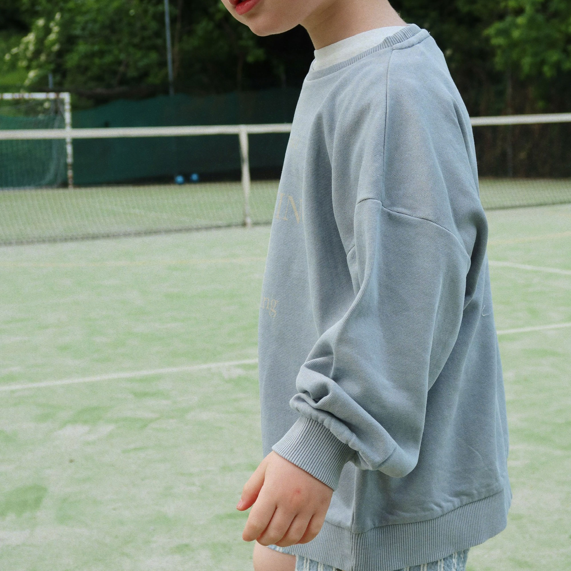 - Classic sweatshirt, hint of stretch, dropped shoulders, crew neckline