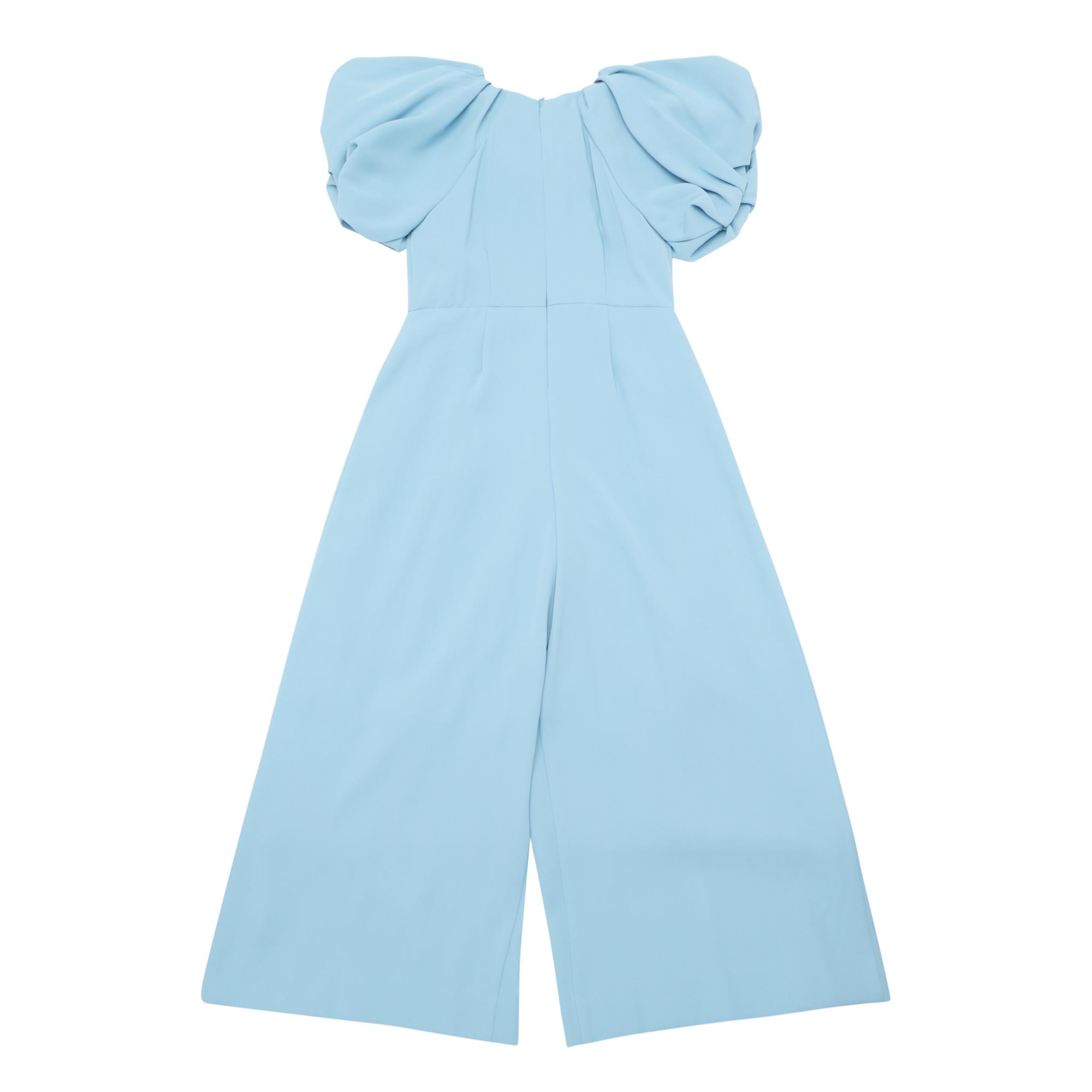 - Round neckline, keyhole detail, bead detailing, short puff sleeves, wide-leg silhouette, rear zip fastening