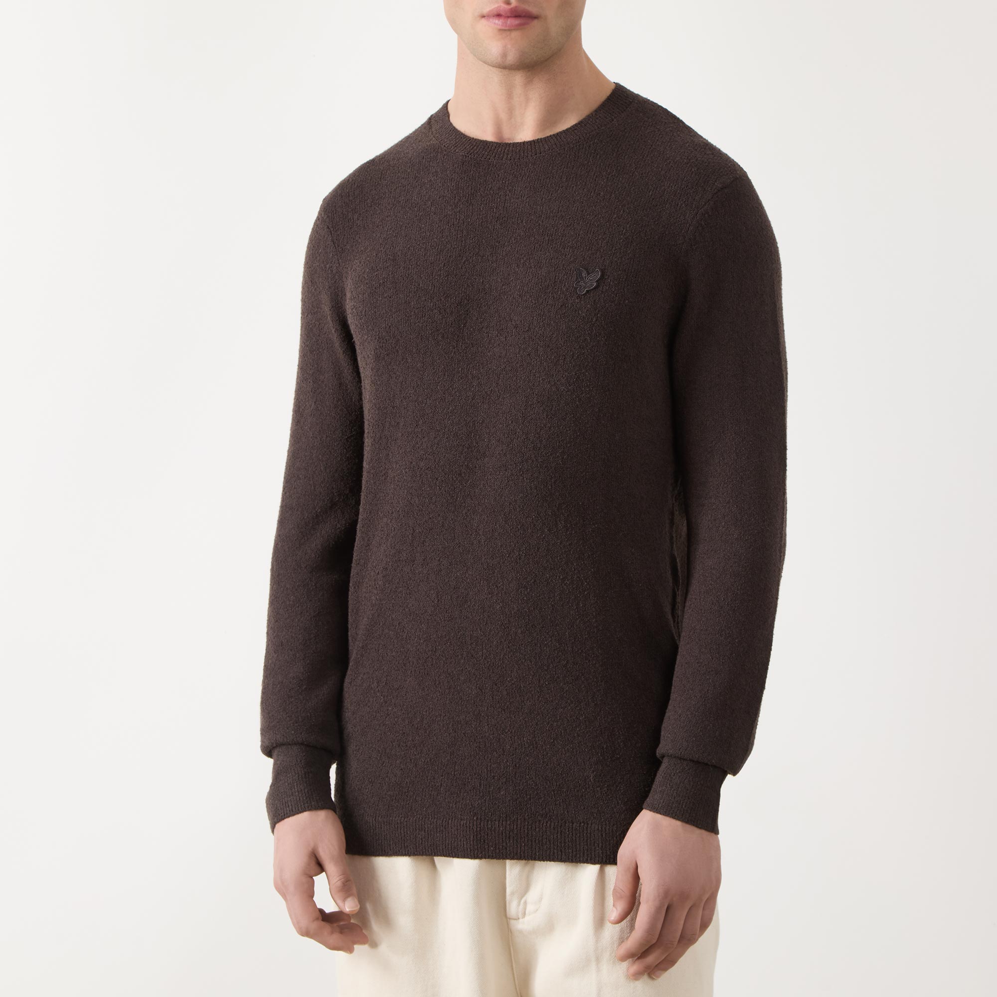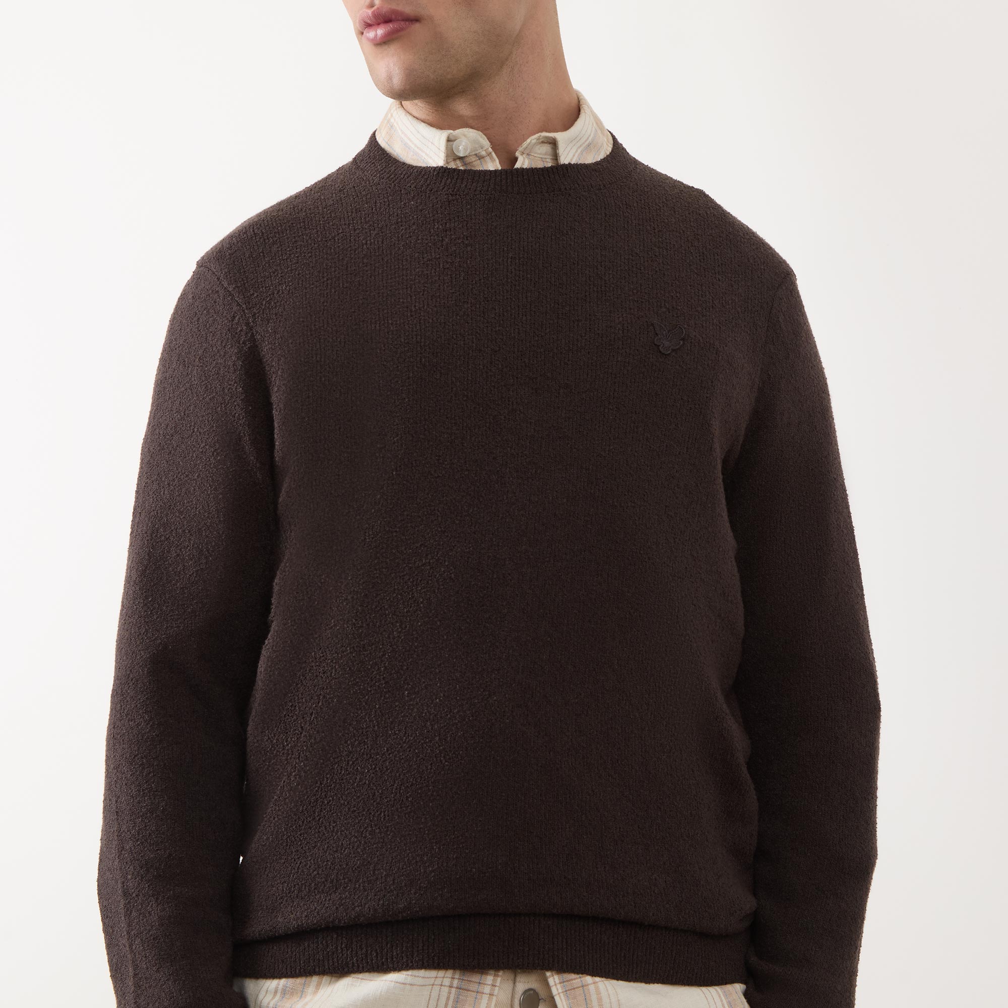 - Crew neckline, long sleeves, ribbed trims, textured knit structure, tonal embroidered Golden Eagle logo detail