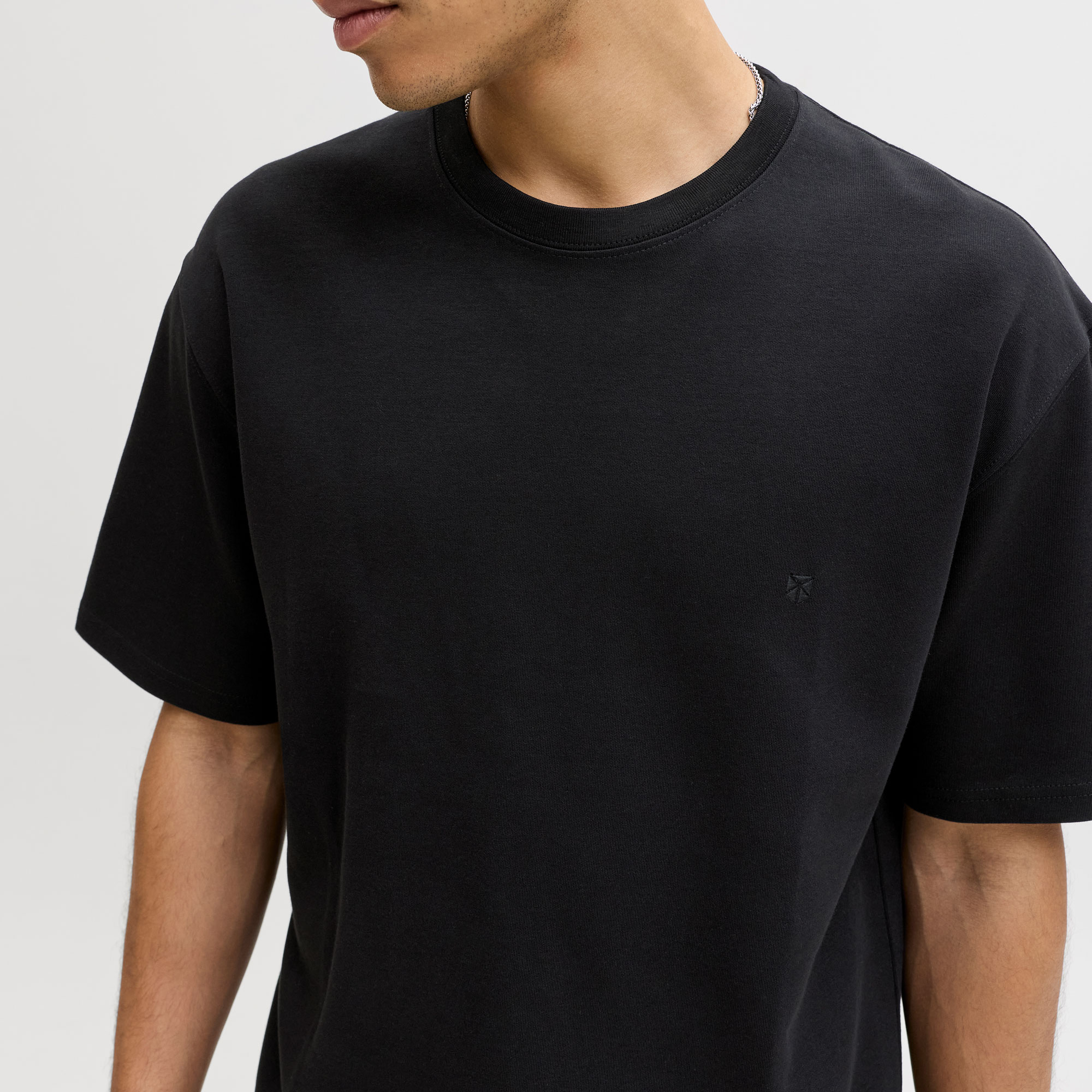 - Crew neck, short sleeves, straight hem, interlock woven finish, logo detail