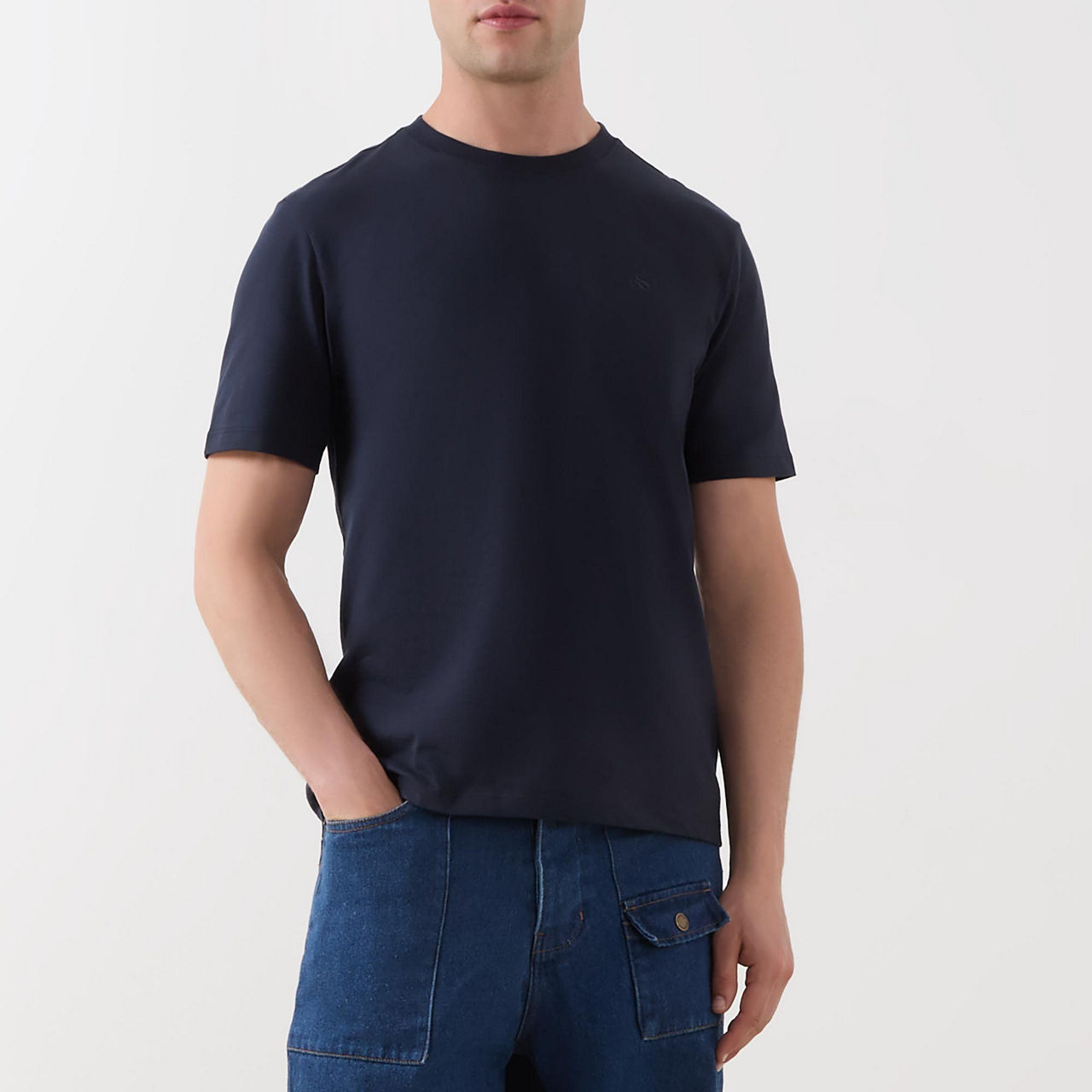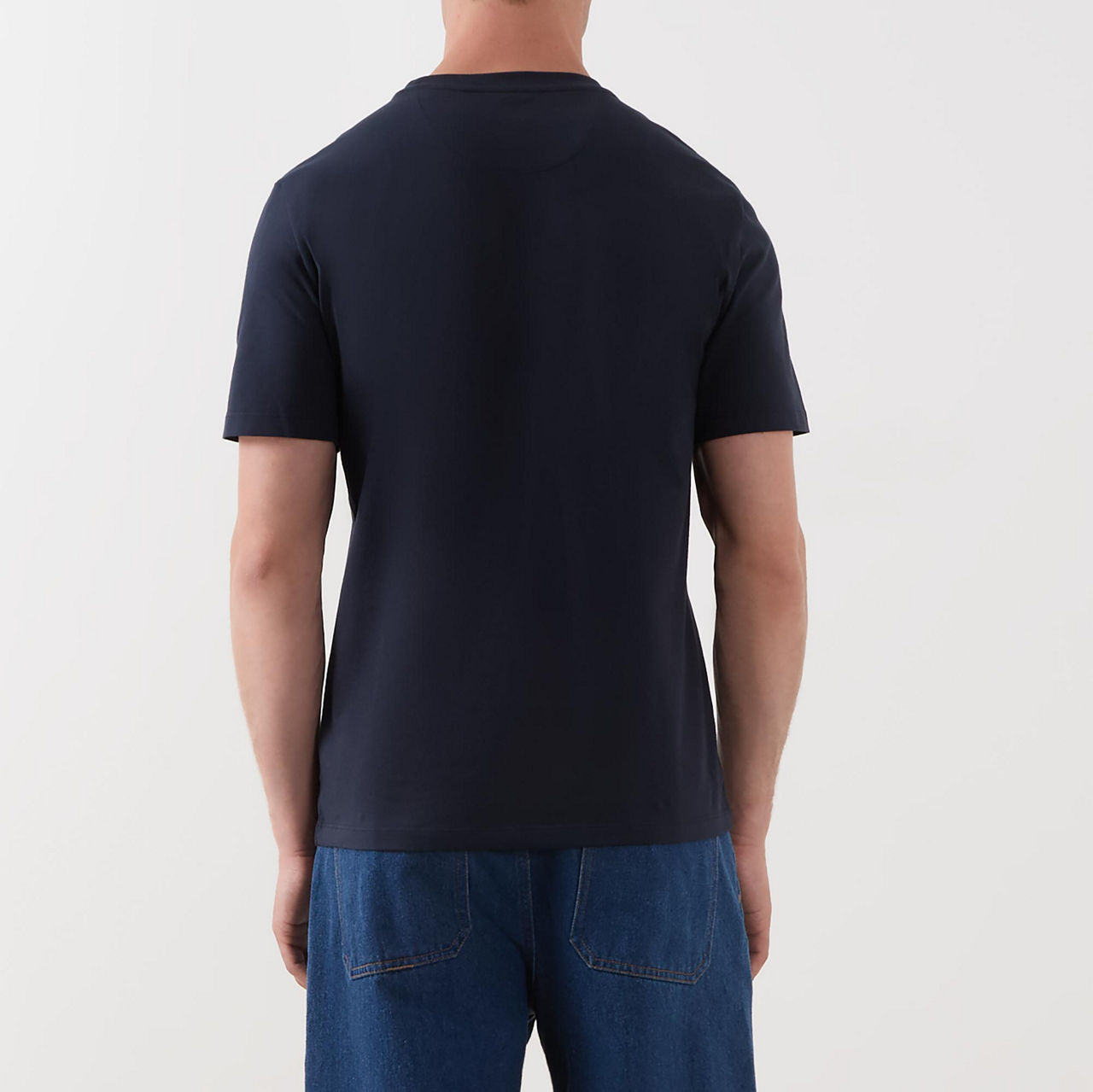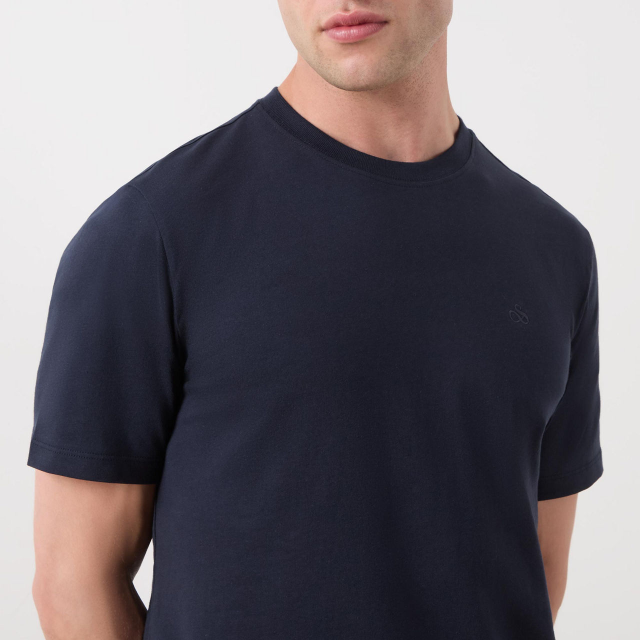 - Round neckline, straight hemline, short sleeves, logo detail