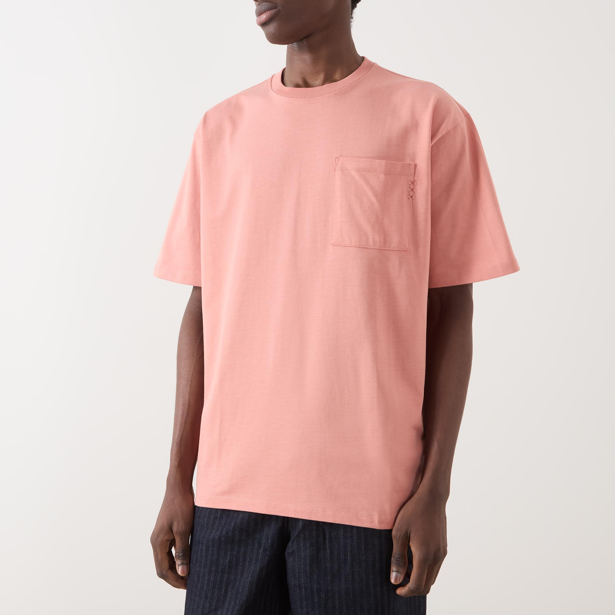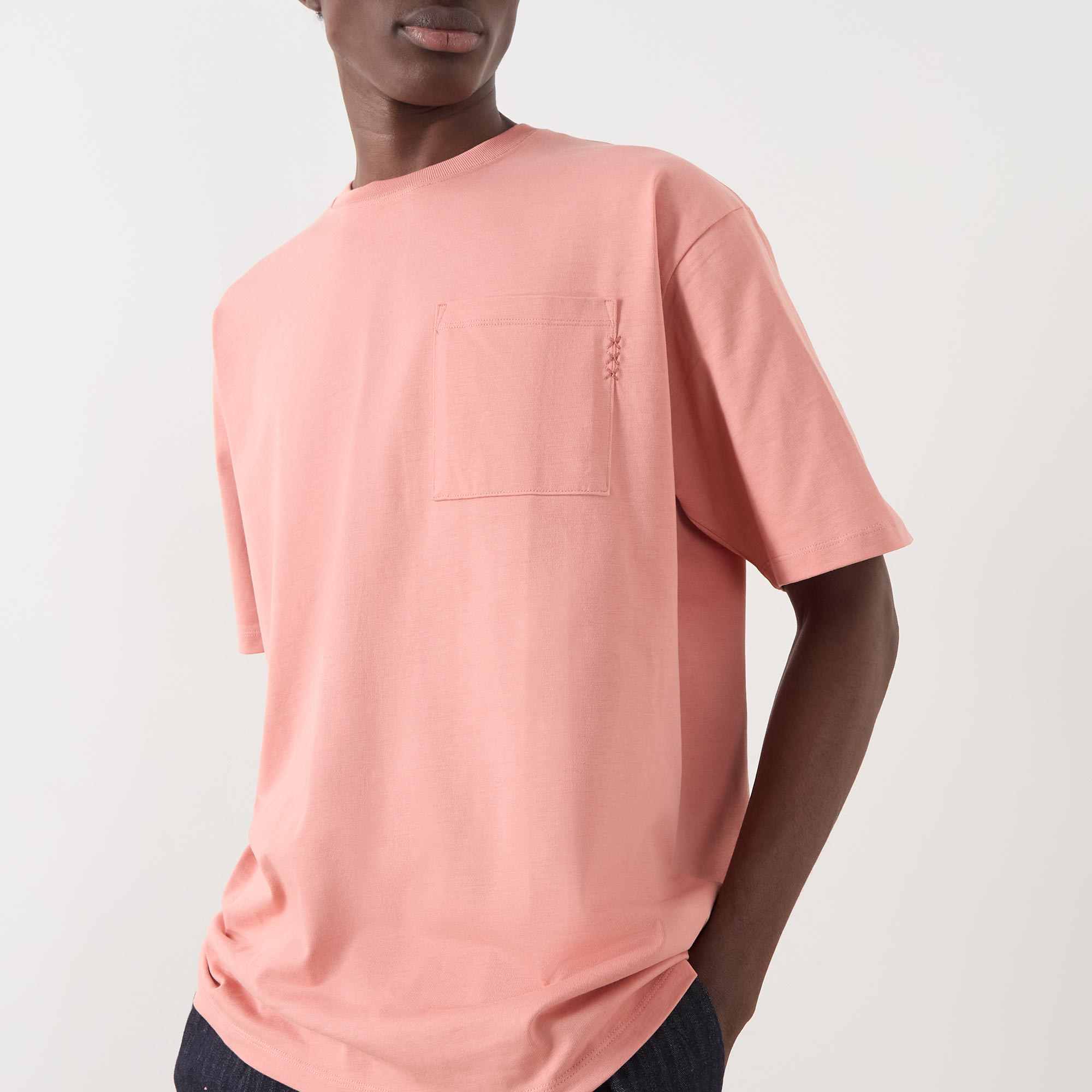 - Round neckline, short sleeves, straight hemline, chest pocket, three crosses stitched detail