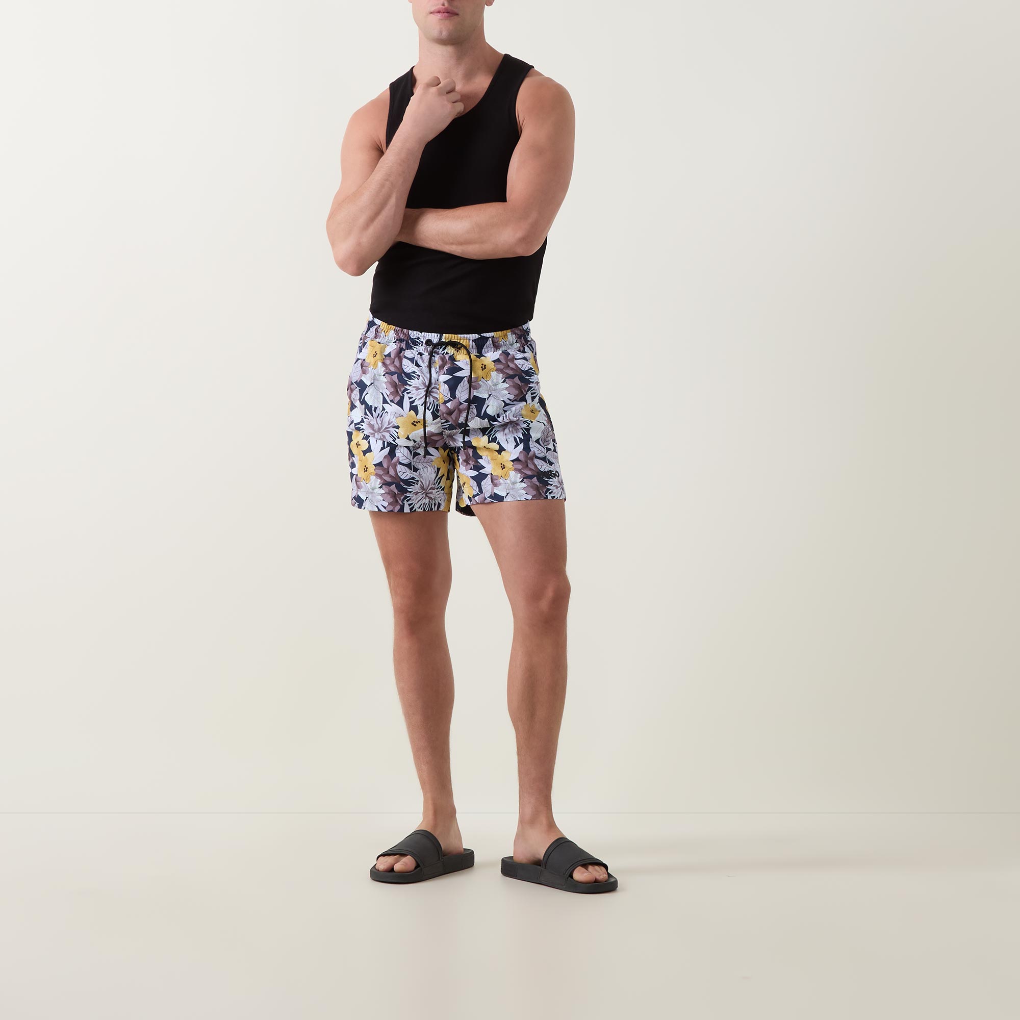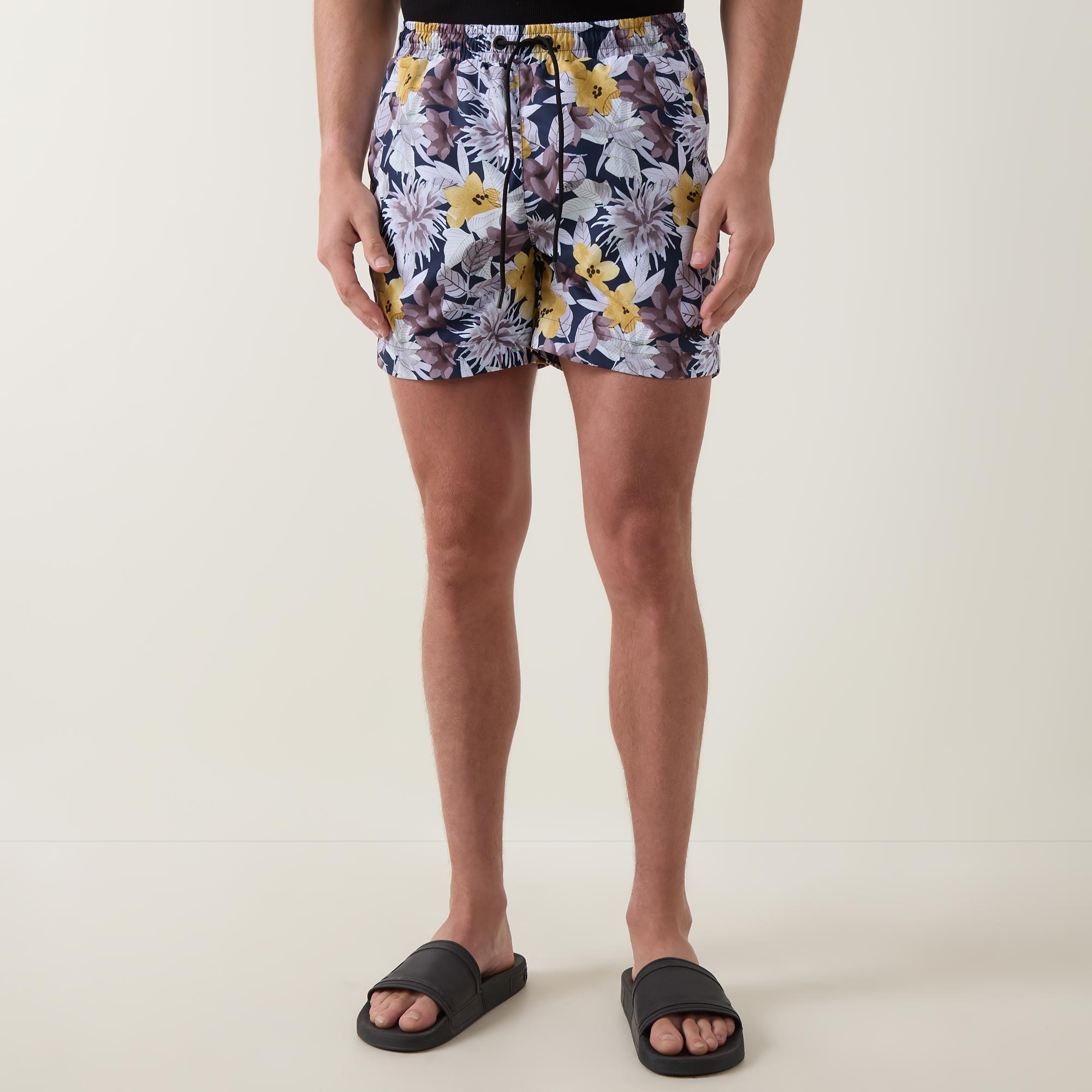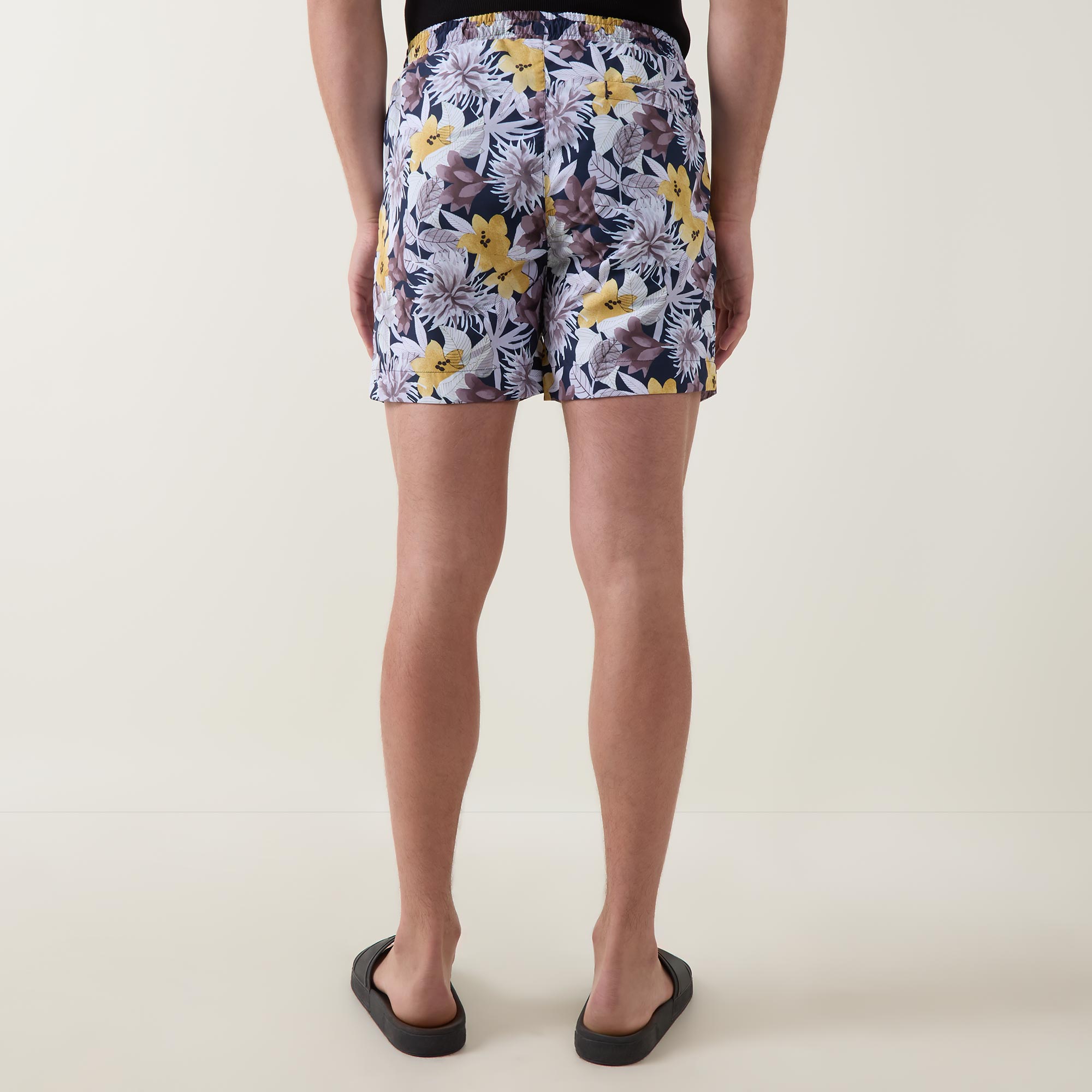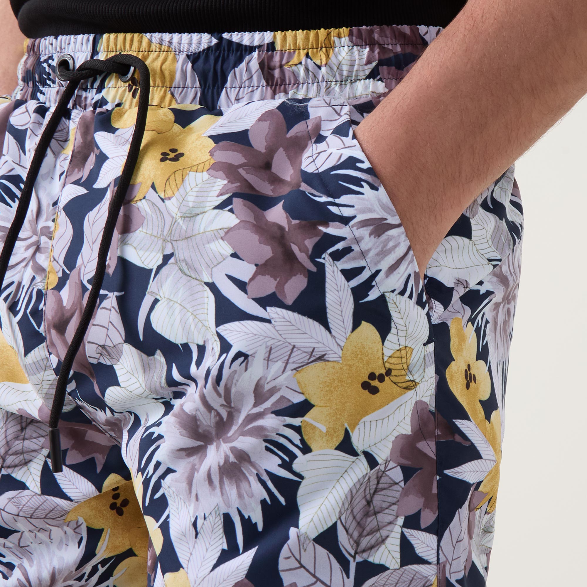 - Elasticated waistband with drawstring adjustable fit, side entry pockets, one rear pocket, botanical print, quick-dry fabric