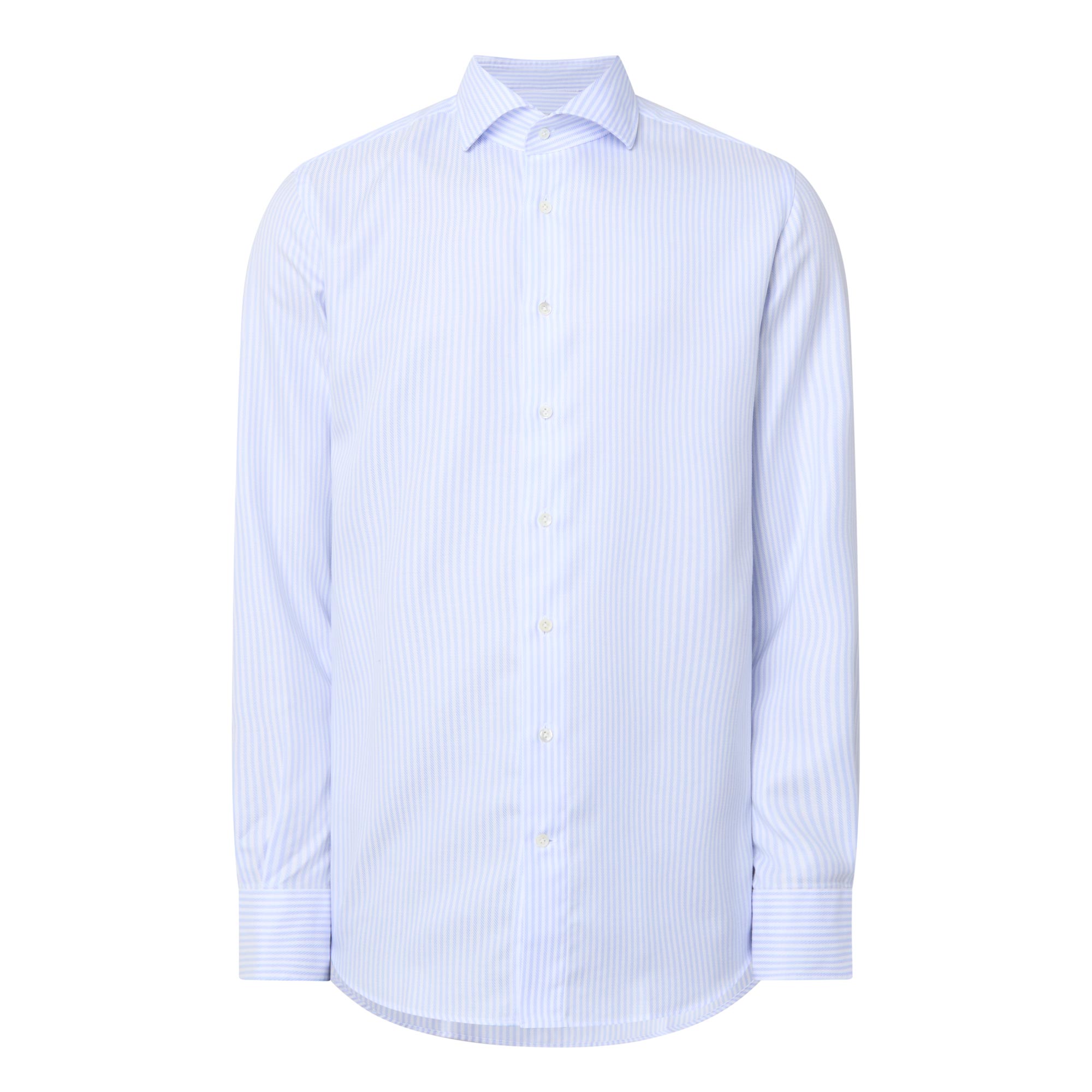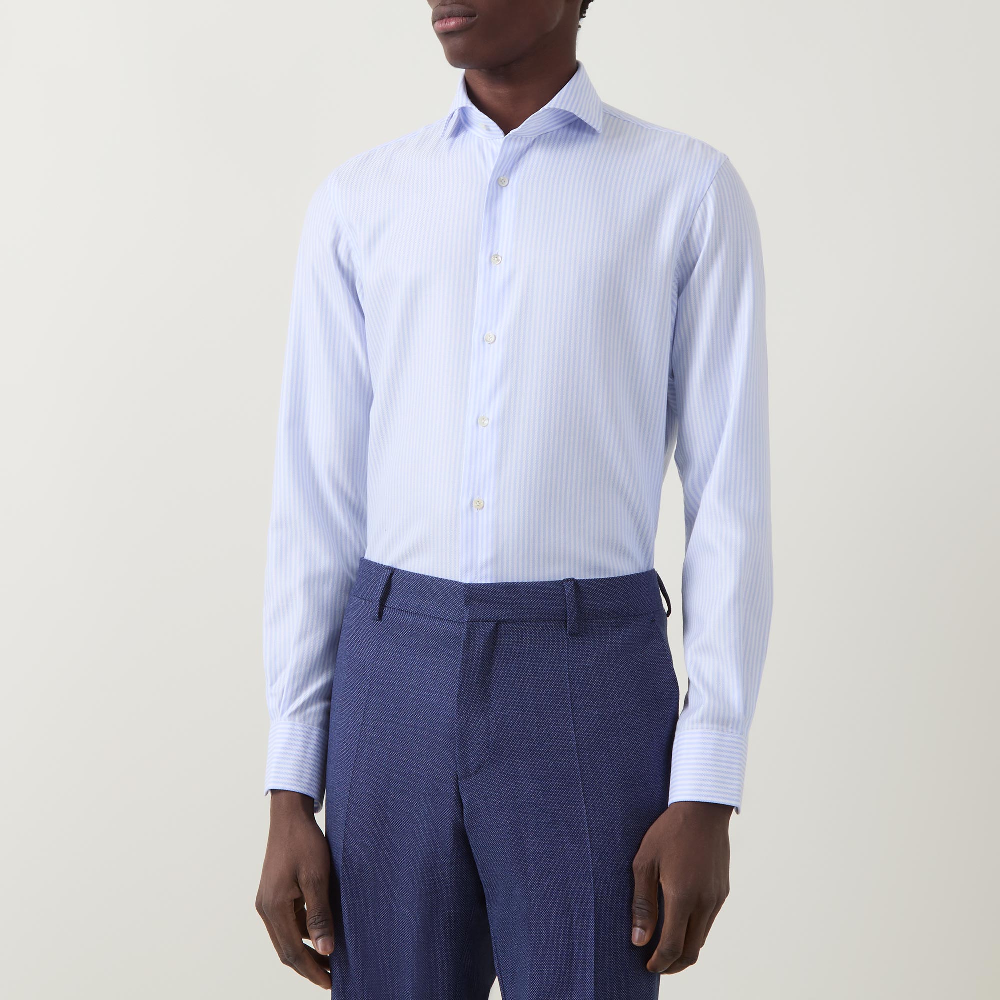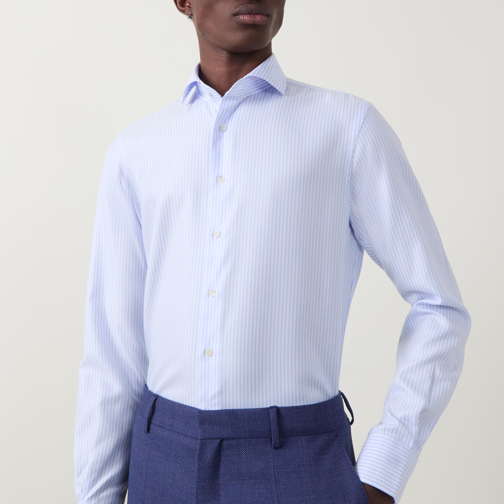 - Non-iron treatment that allows the shirt to restore itself after washing, pointed collar, striped, single cuffs, long sleeves, button fastenings