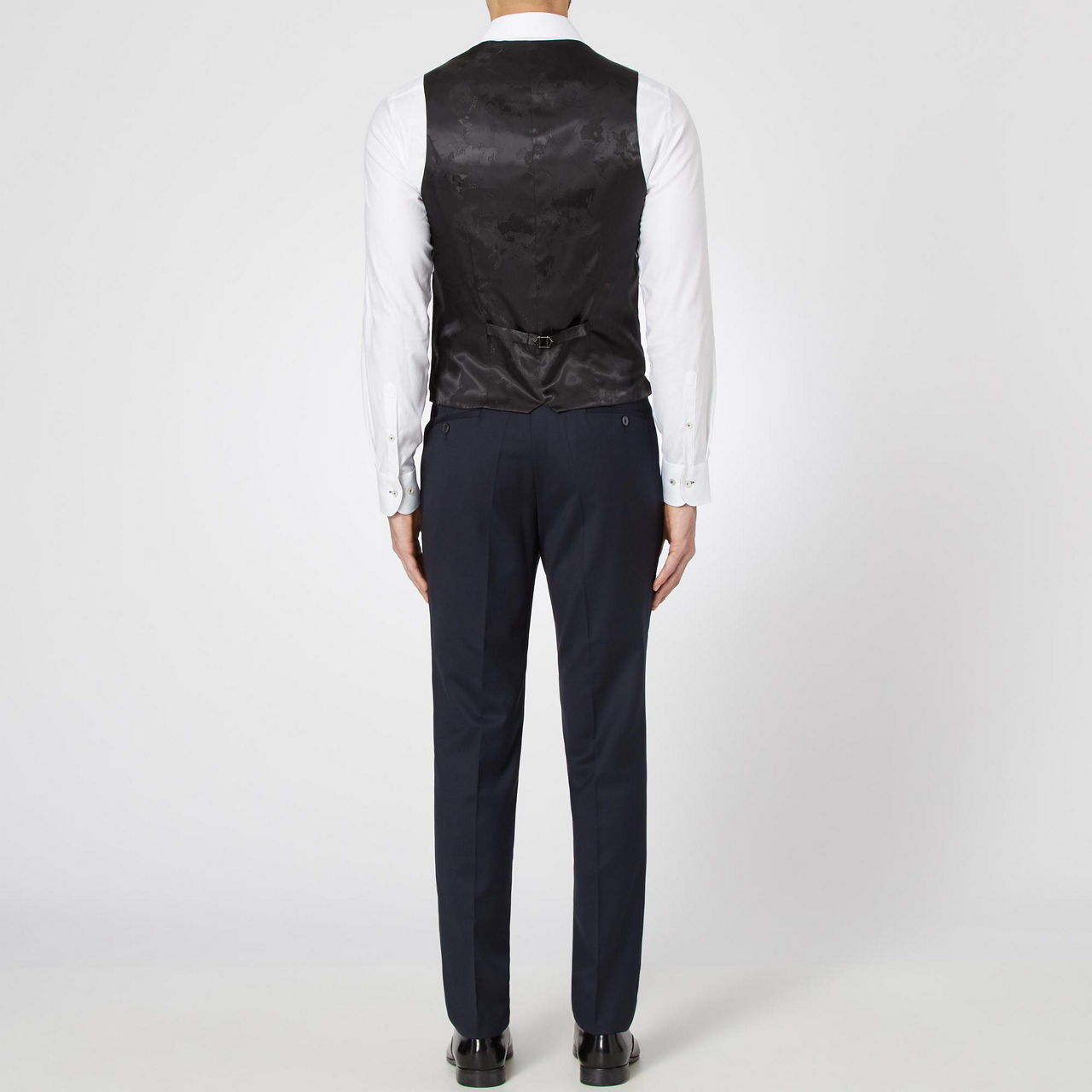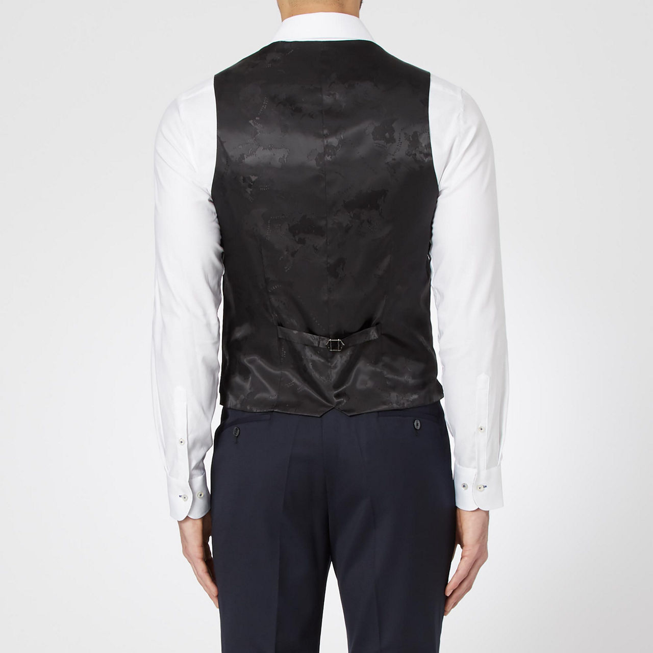 Underpinned by changing fashions while maintaining the foundations of sharp formal tailoring, Irish label Remus Uomo offer the Rocco Tux Waistcoat. Made from a smooth wool blend, it is cut to a comfortable wool blend, while the button fastenings and slant pockets nod to a classic design. The contrast back with subtle floral printing brings a modern spin.
