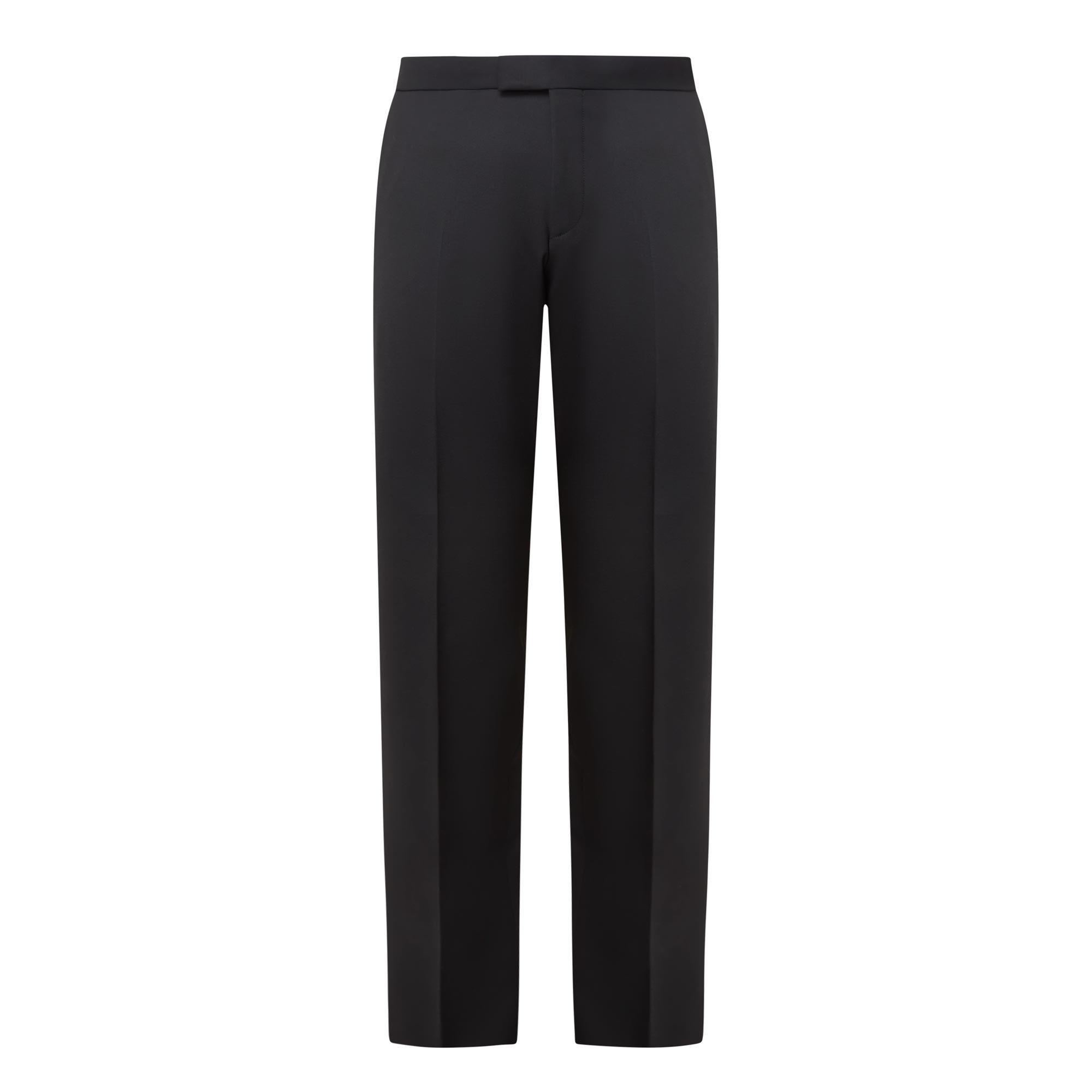 - Hook and fly zip fastening, belt loops, side entry pockets, rear welt pockets, pressed creases