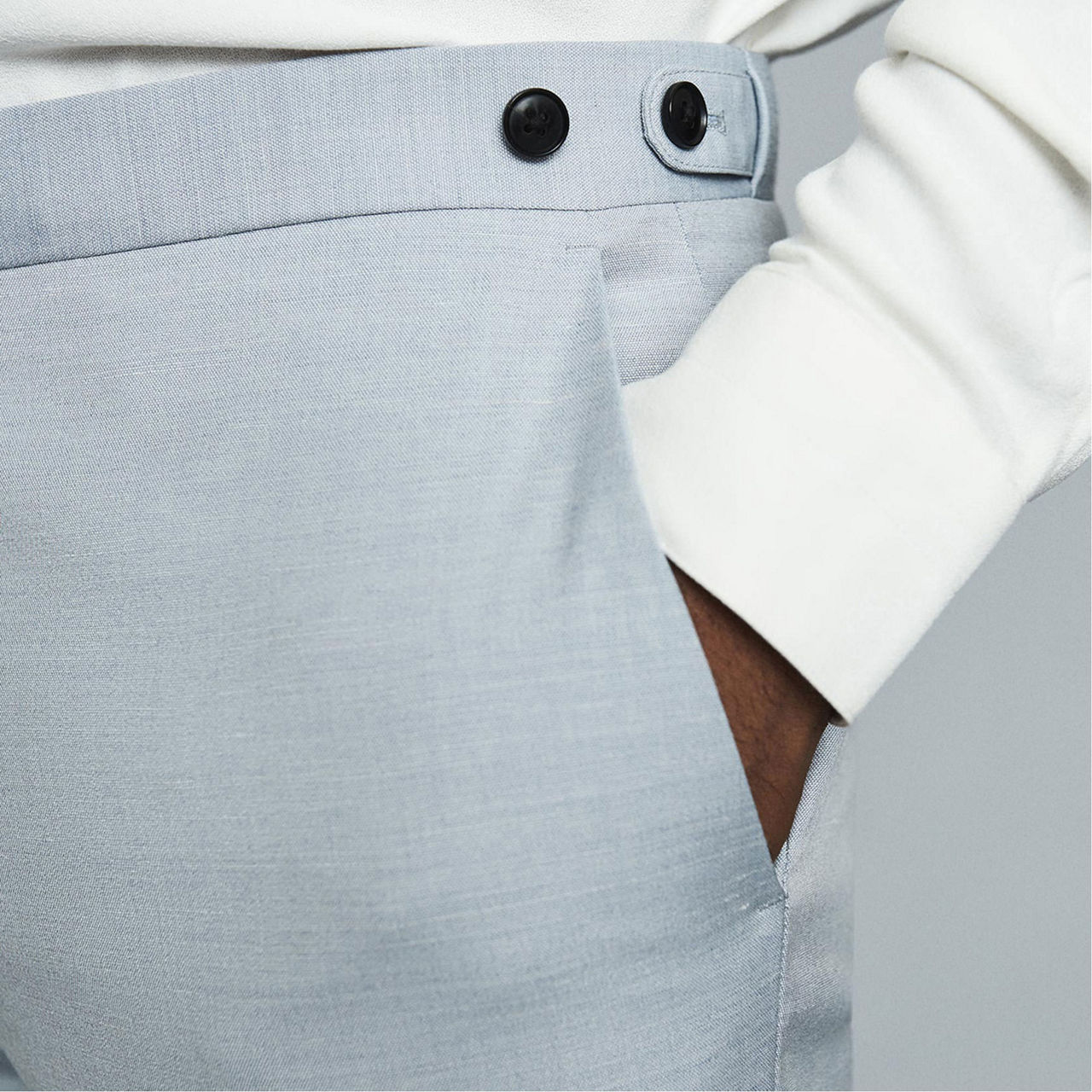 Embrace this season&rsquo s trend for tailored separates, the Exquisite trousers in soft blue are a versatile addition to your wardrobe. They&rsquo re crafted from a luxurious wool blend and cut to a slim fit, combining comfort with a lightweight wear. Simply pair it with a crisp white shirt for work.