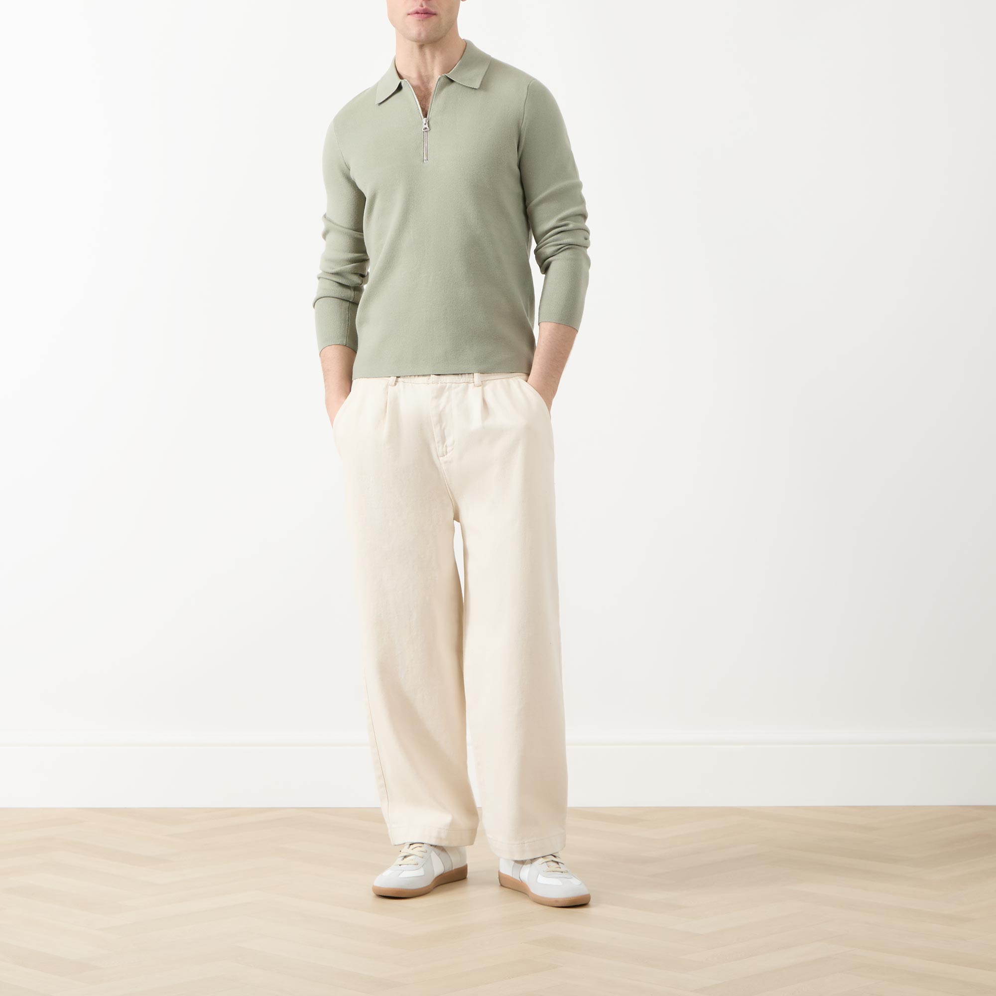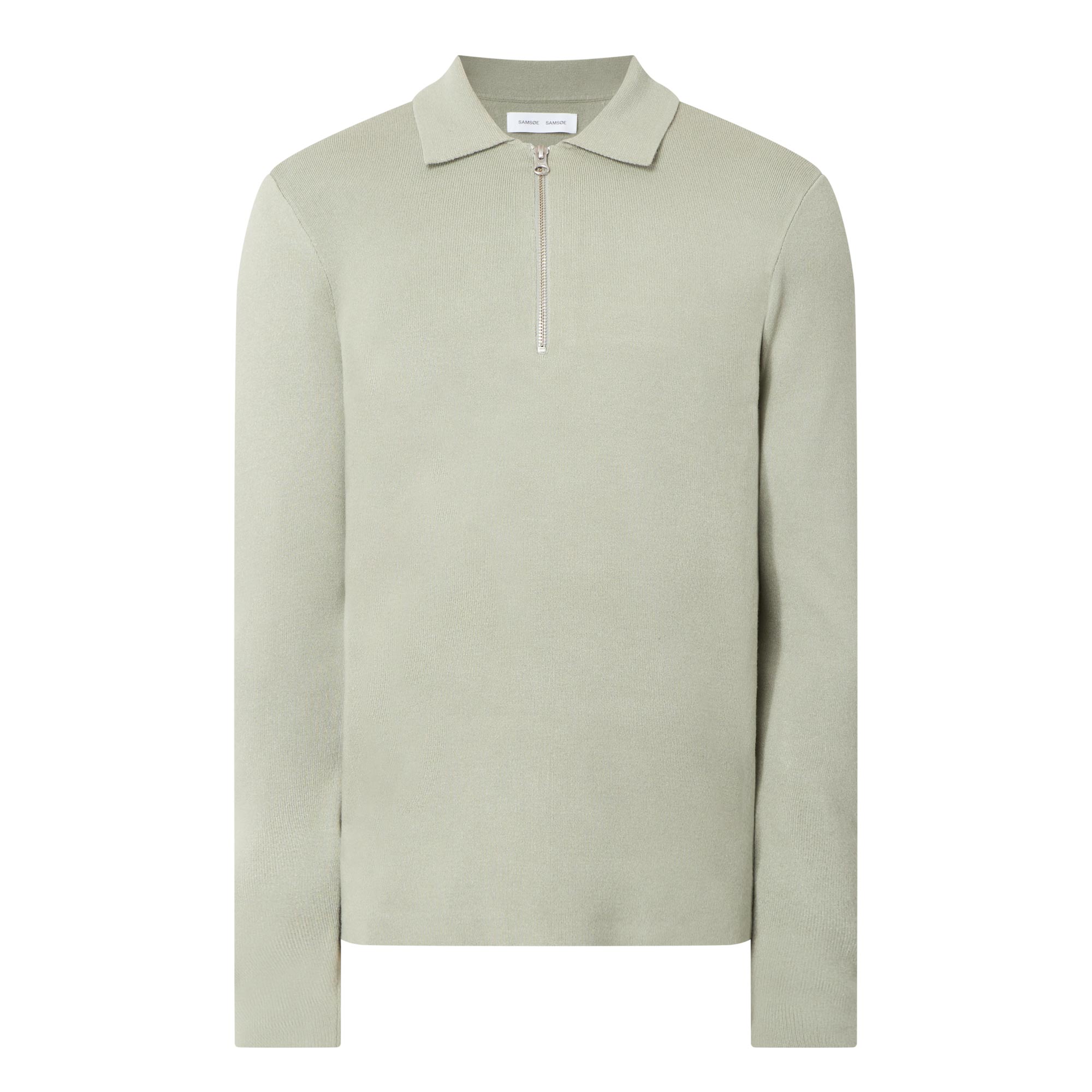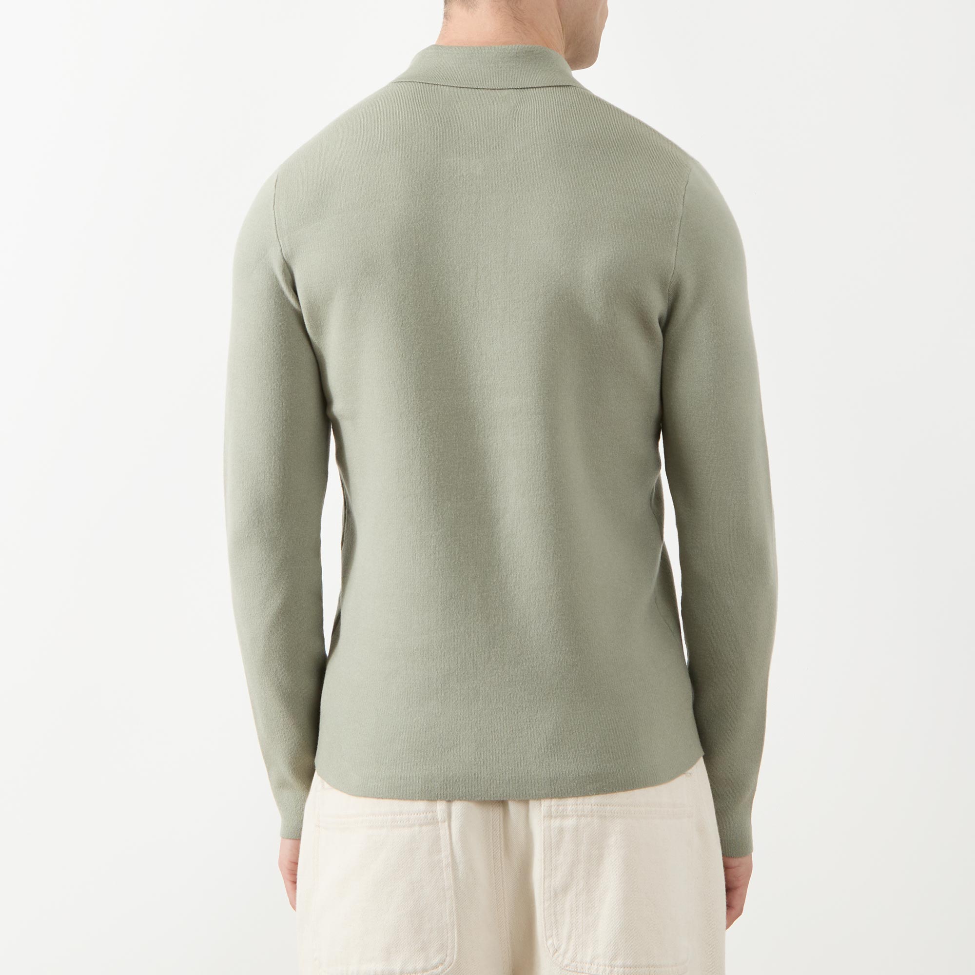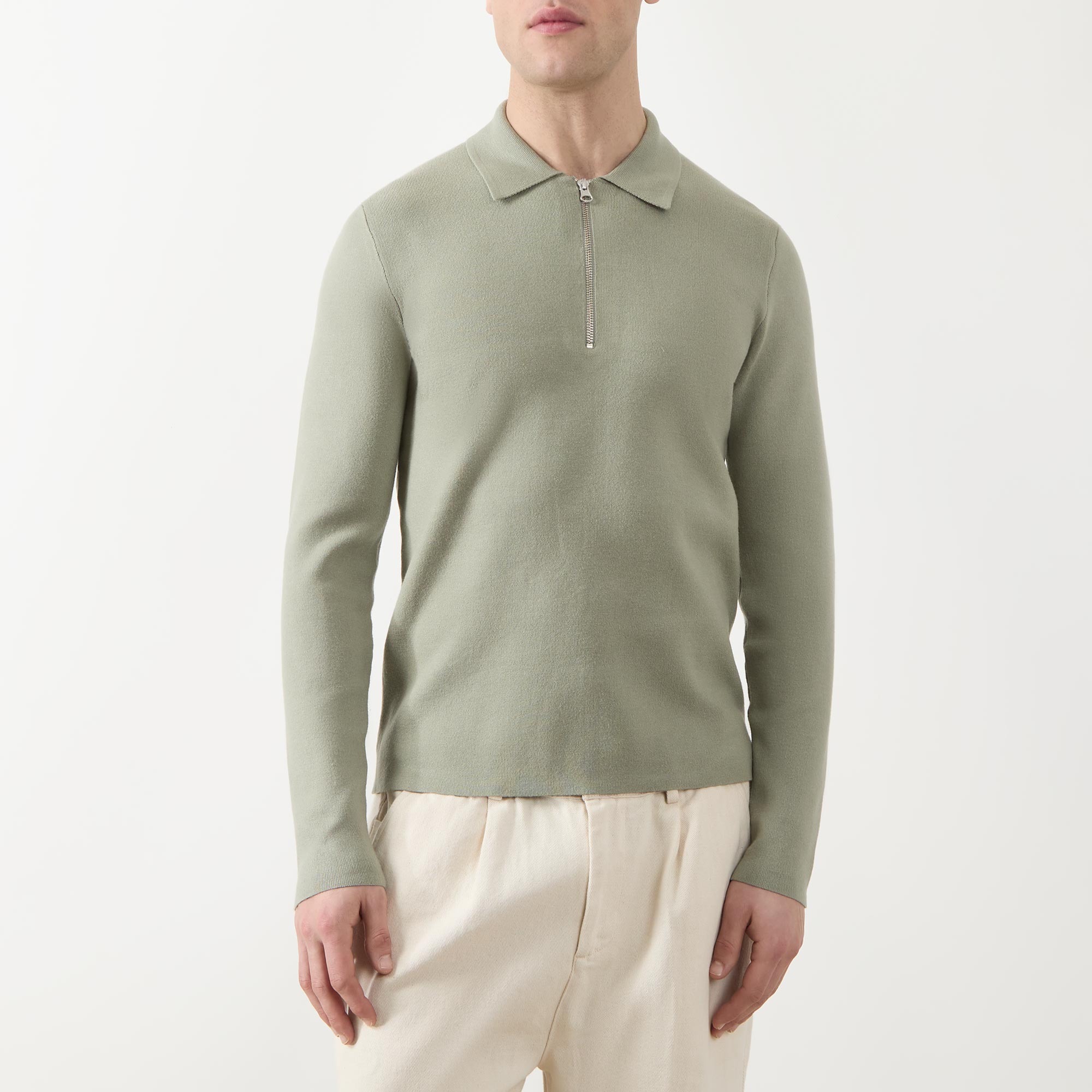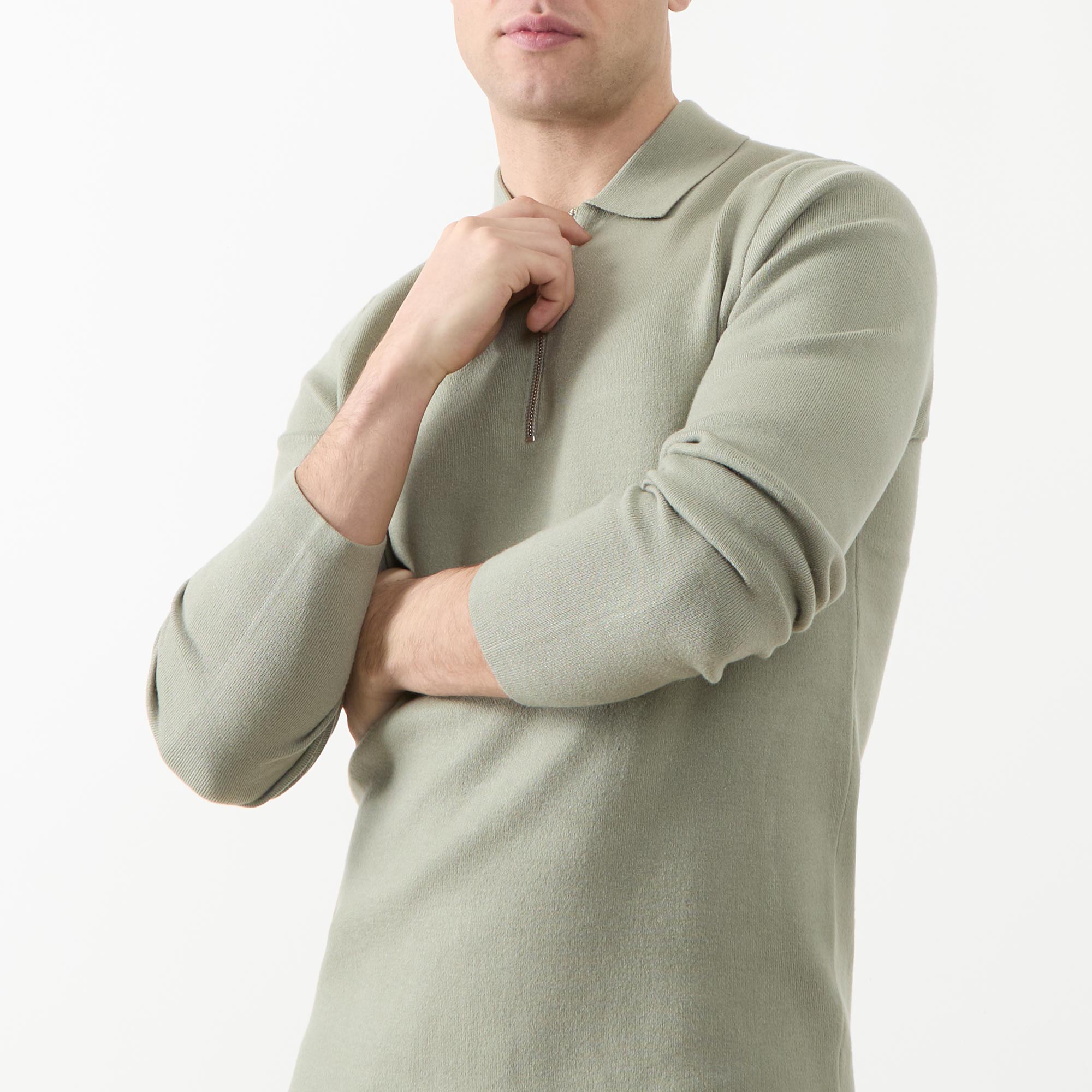 • Flat polo collar, long sleeves, half zip-fastening placket, fine-knit finish