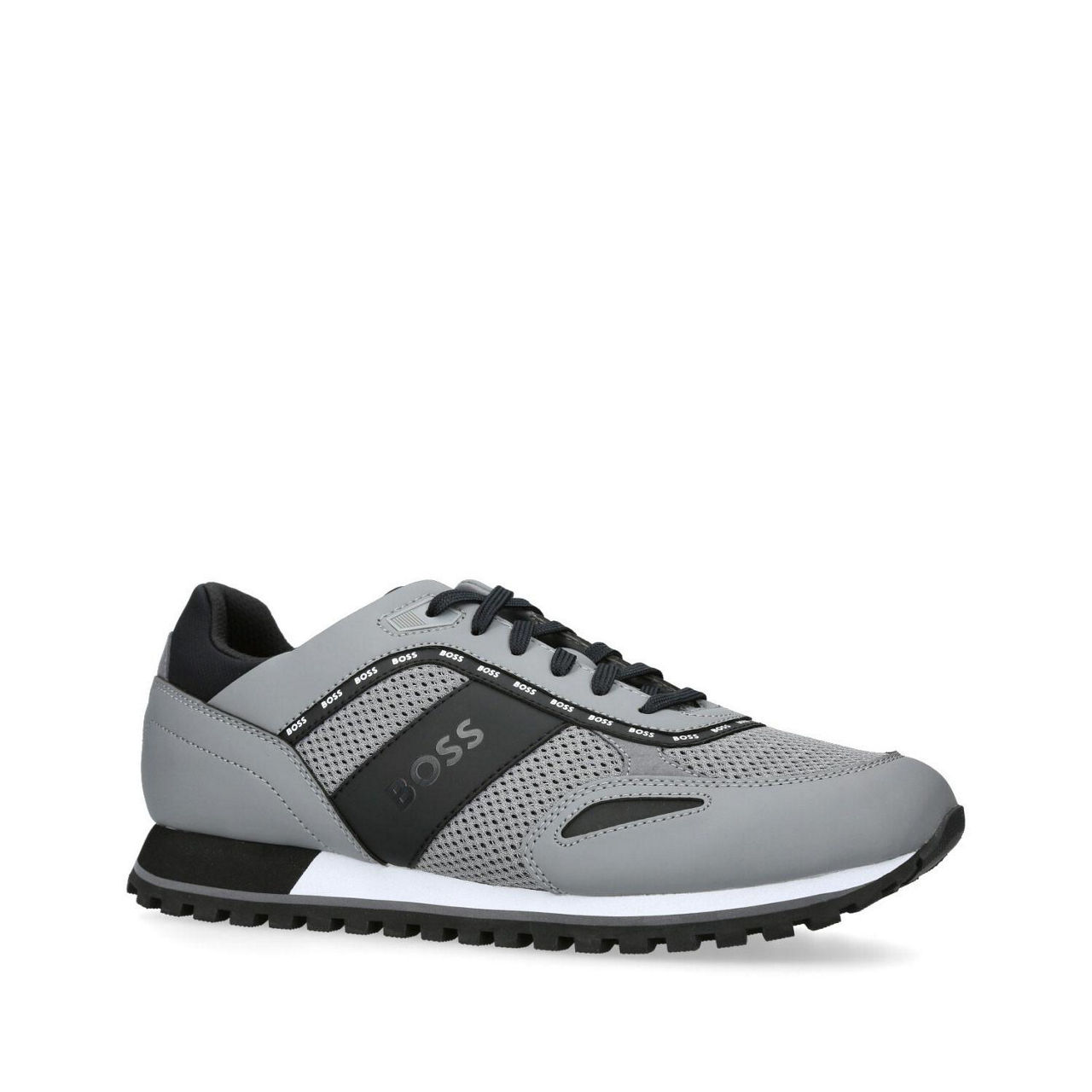 A sporty, retro-style trainer, Hugo Boss' Parkour Trainers are a mix of fabric and mesh in a monochrome hue and stamped with the brand's logo. The ideal everyday trainer, team with activewear or casual joggers.