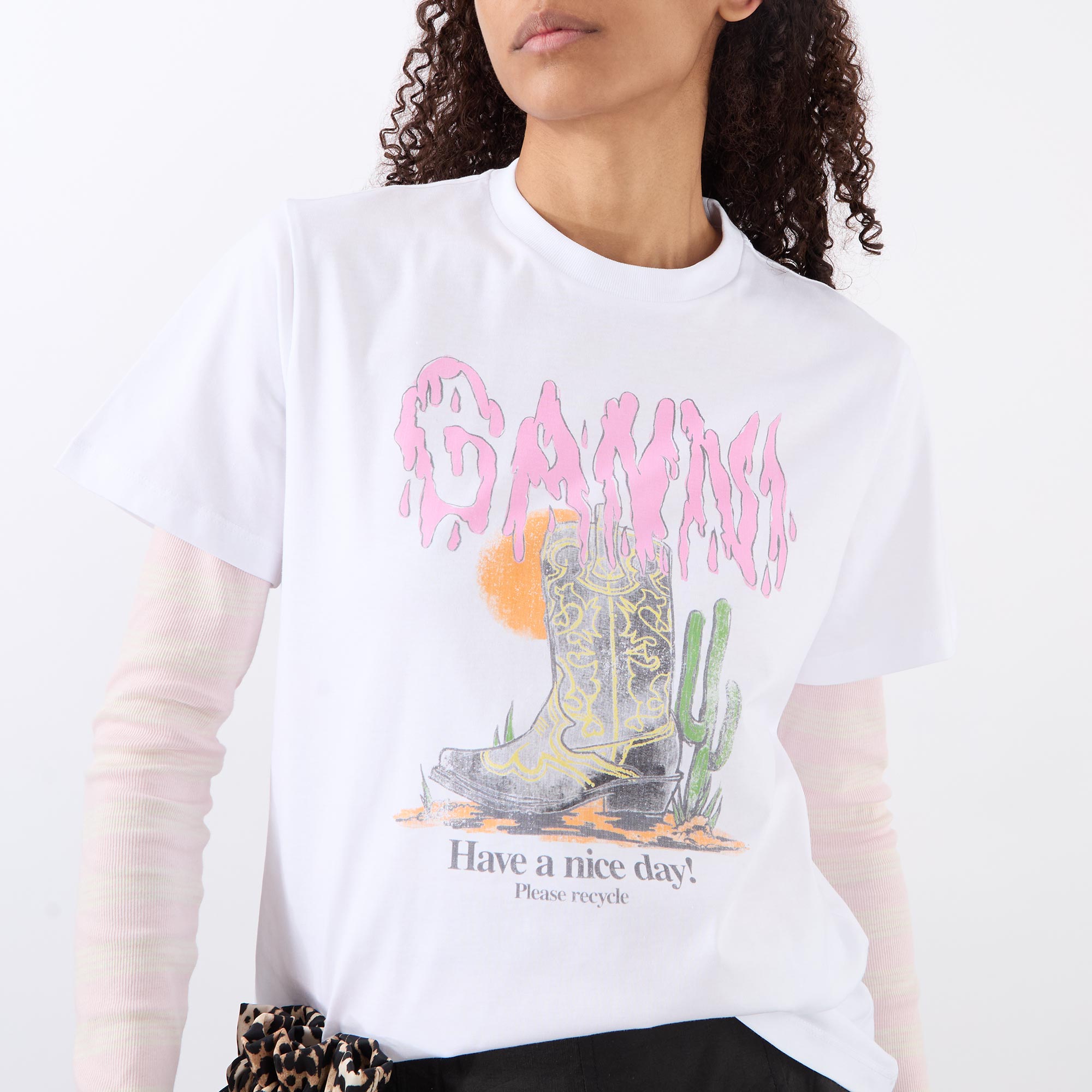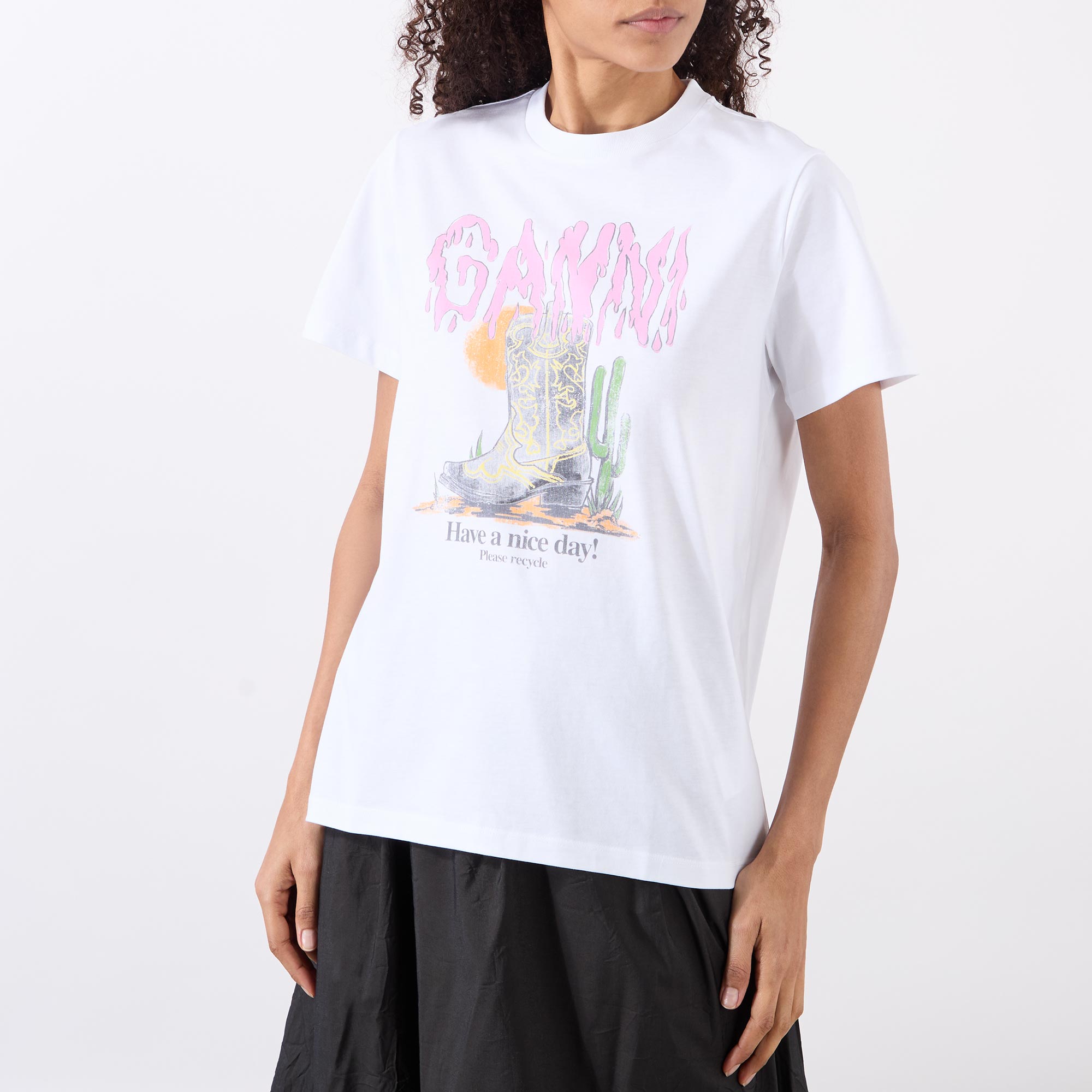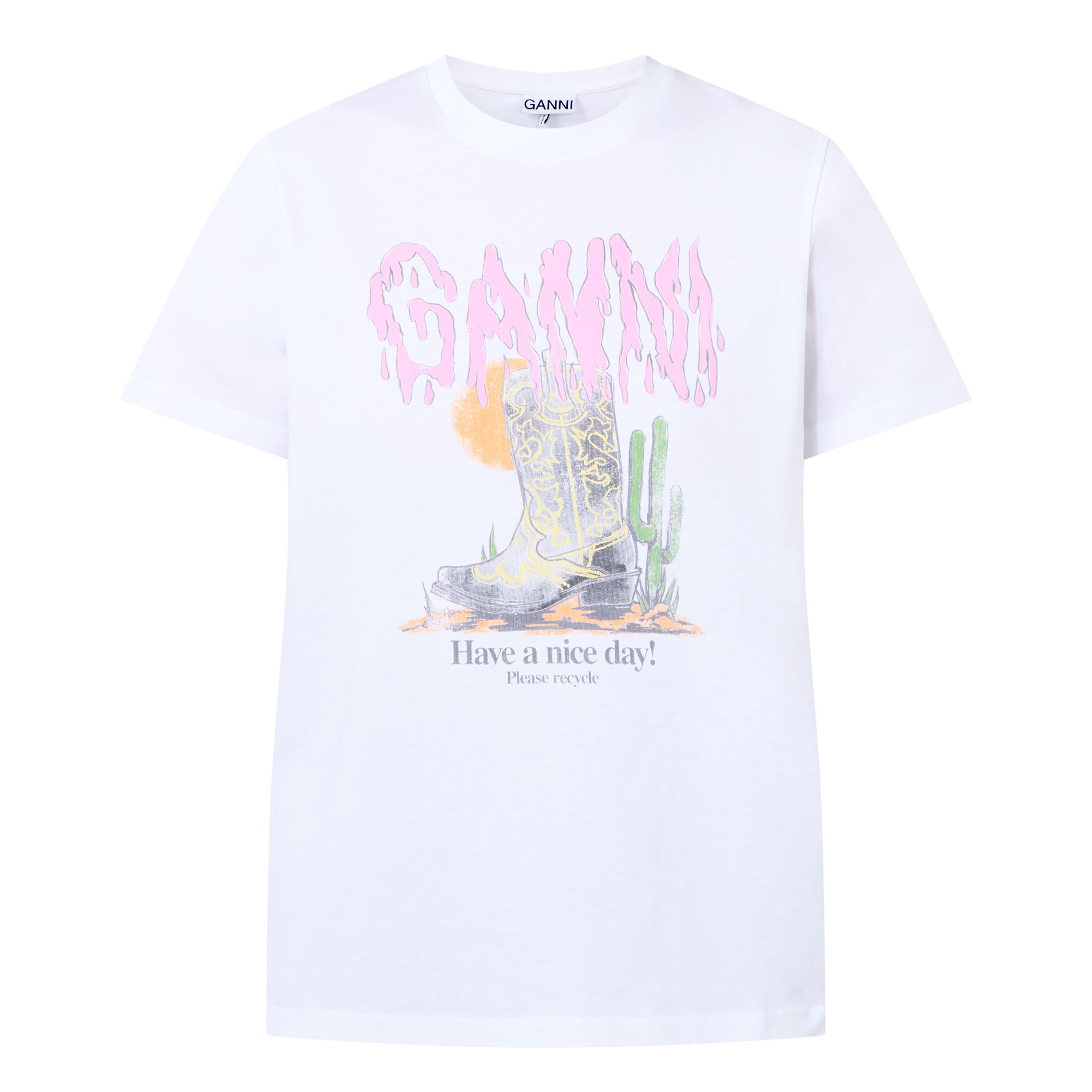 GANNI Cowboy Boots Graphic Logo T-Shirt