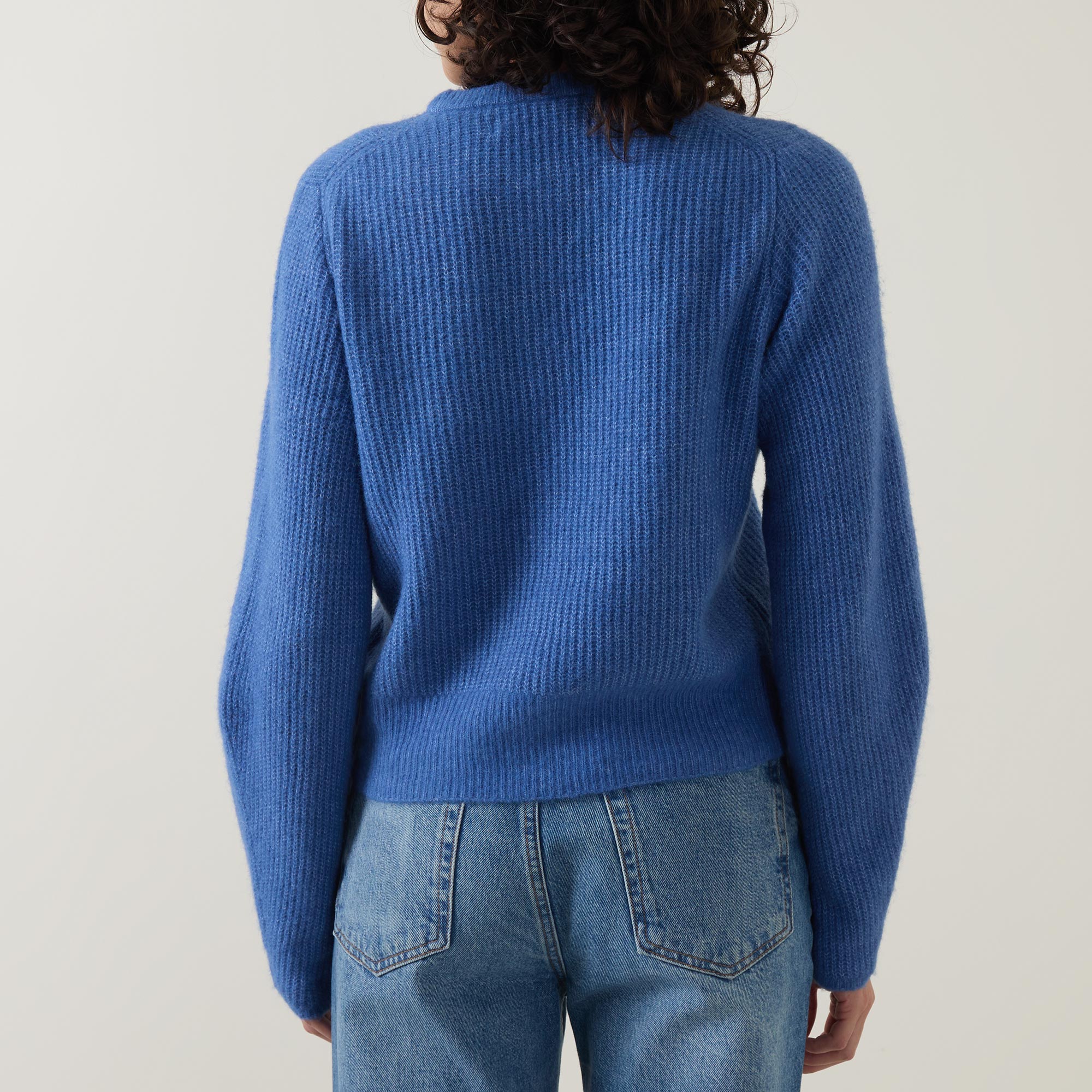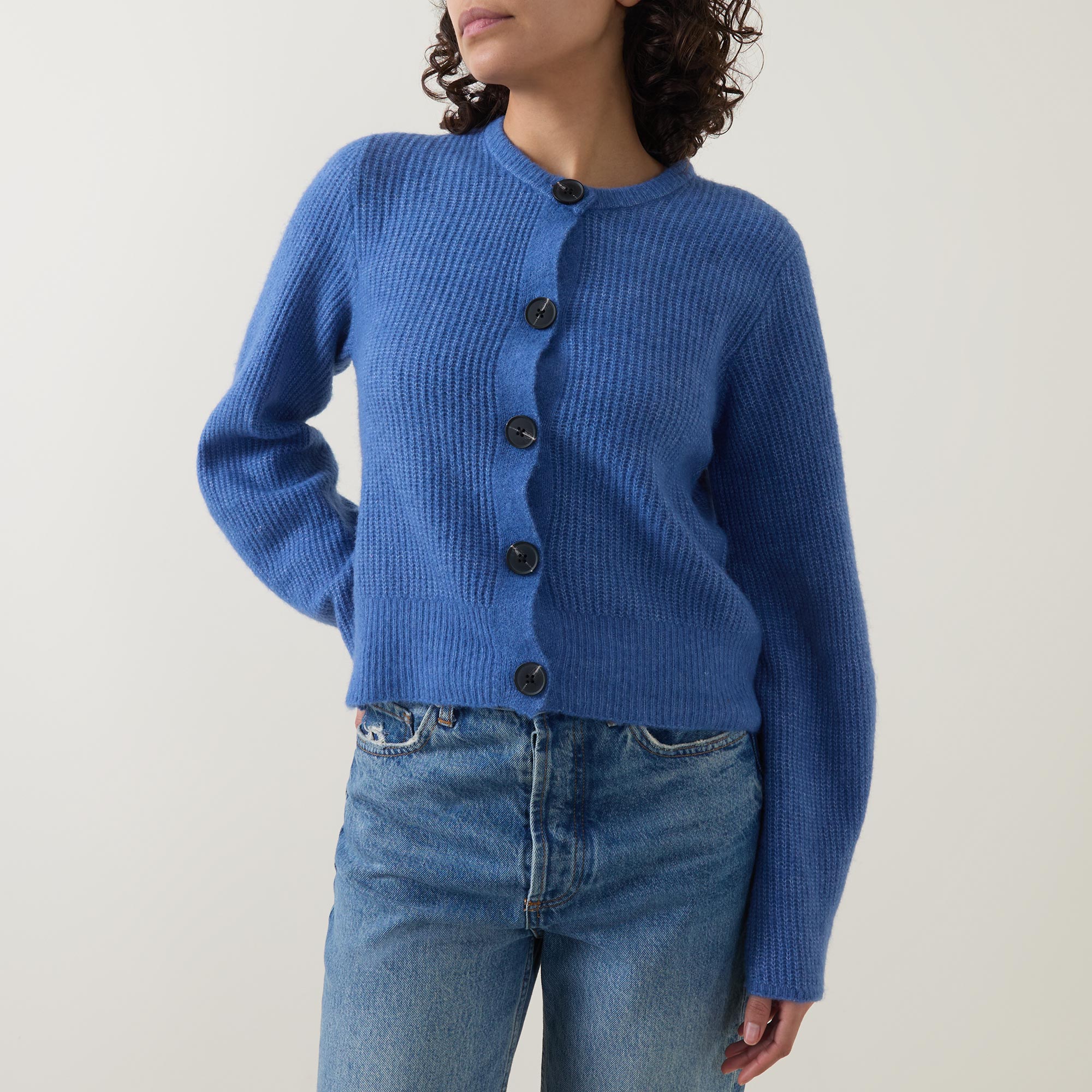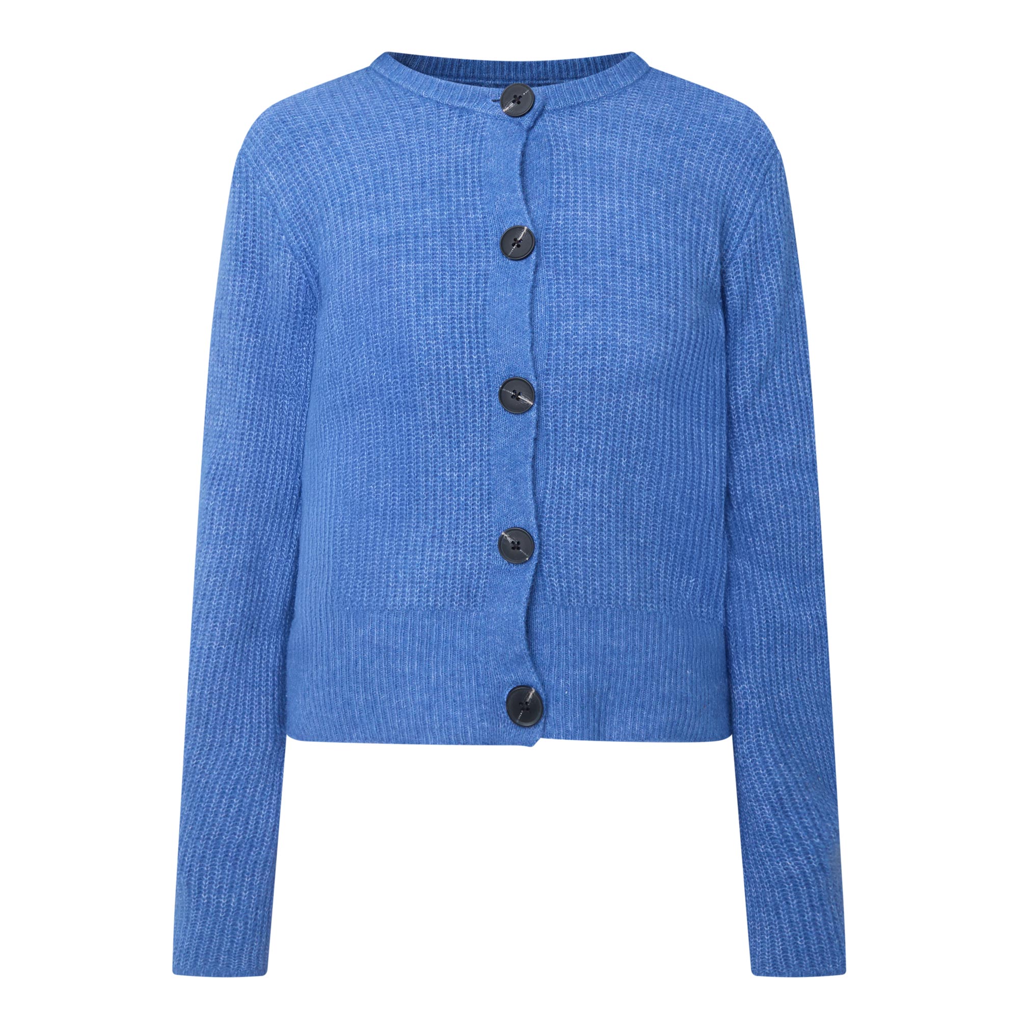 • Ribbed knit, round neck, long sleeves, button fastenings, straight hemline