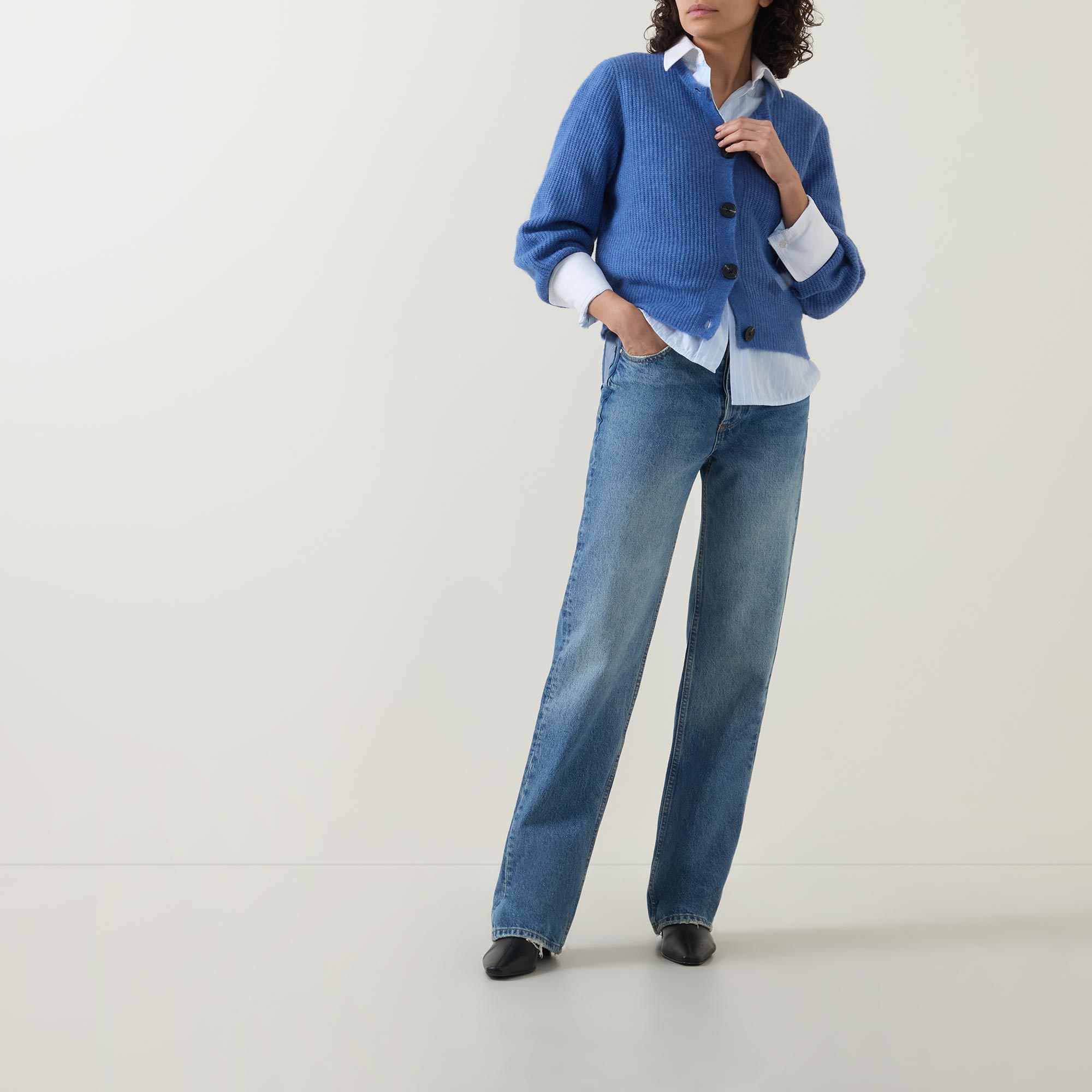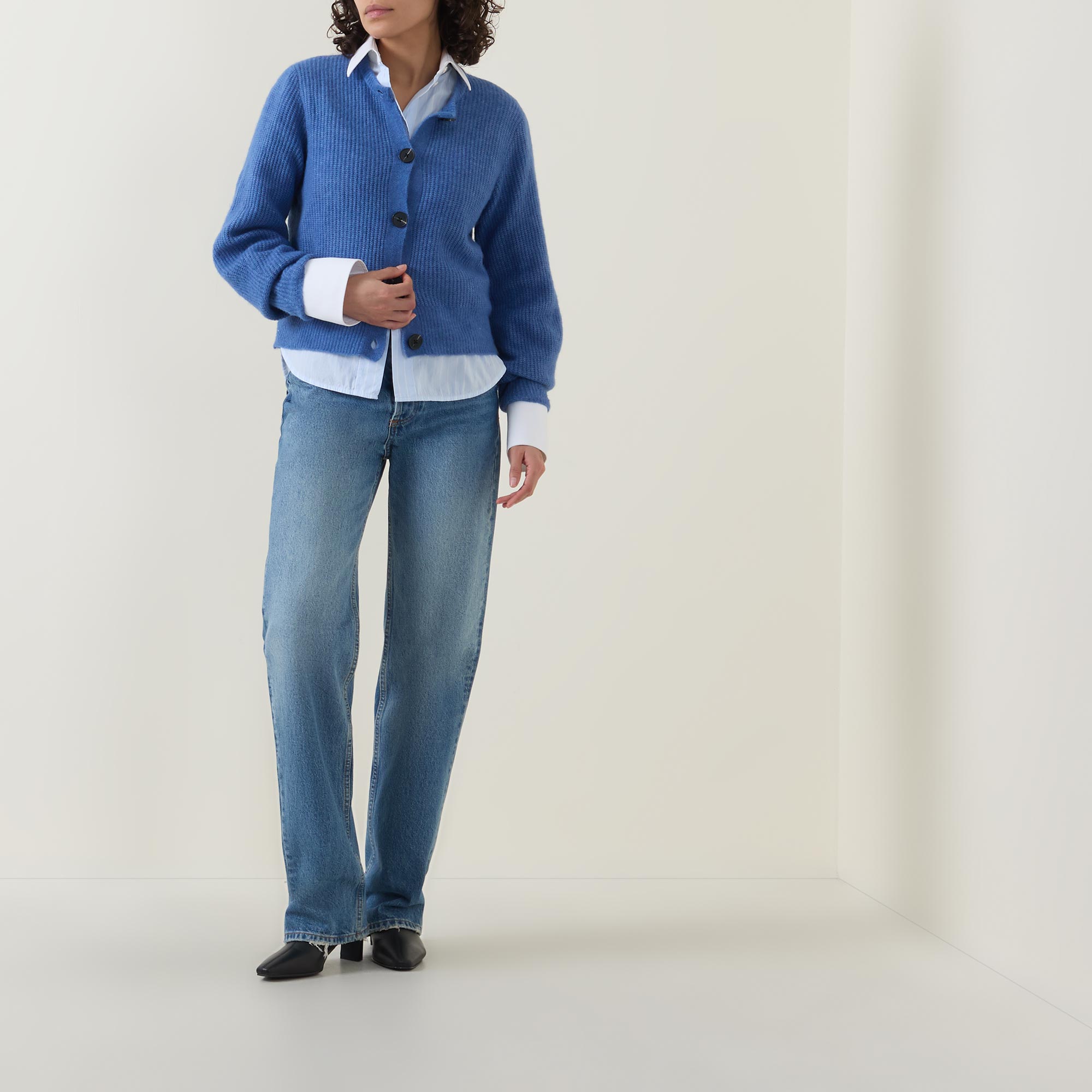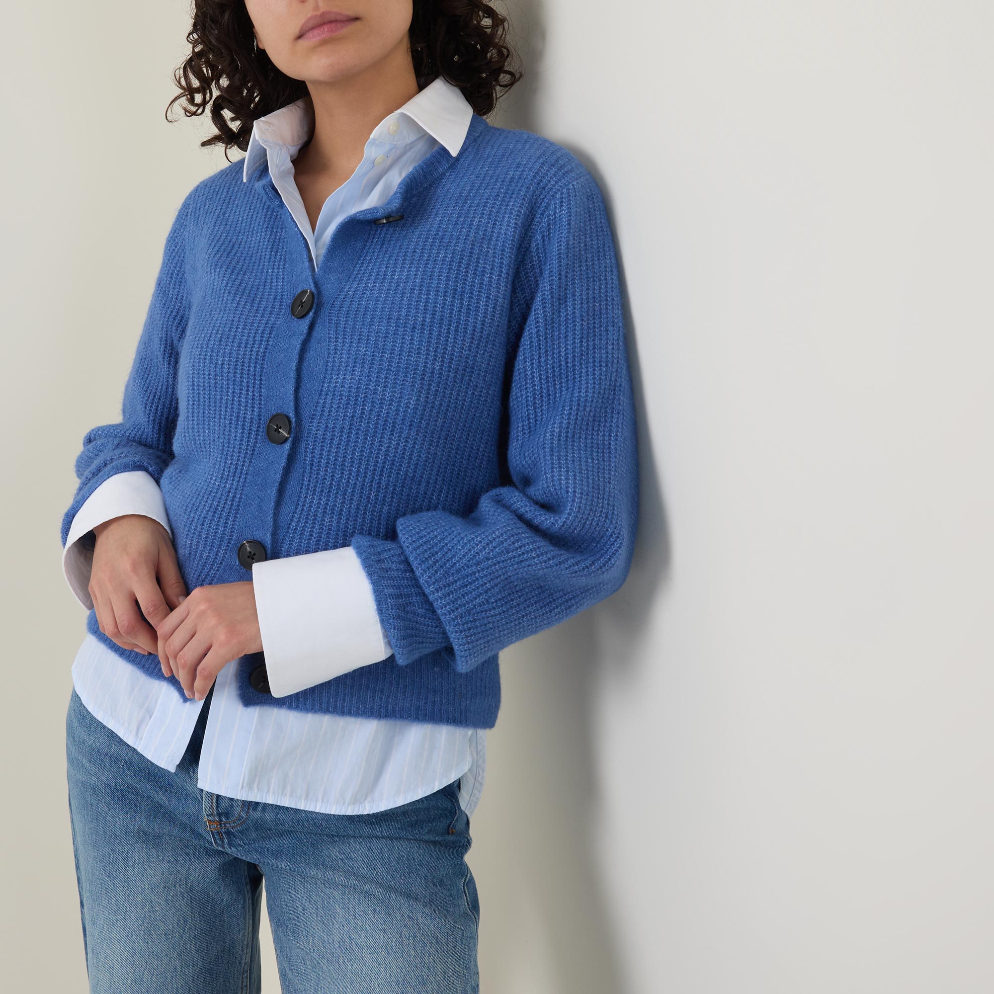 • Ribbed knit, round neck, long sleeves, button fastenings, straight hemline