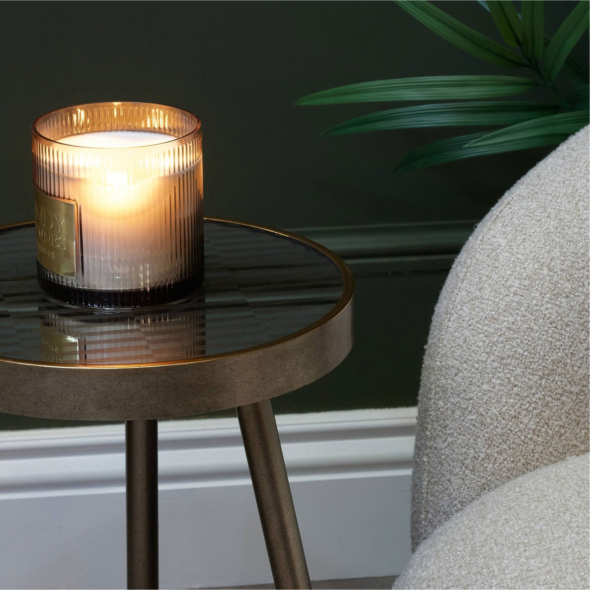 This beautiful tripod table from Mindy Brownes features a sleek distressed finish with a wave design on a mirrored top. It is an ideal statement piece for any room in the home.