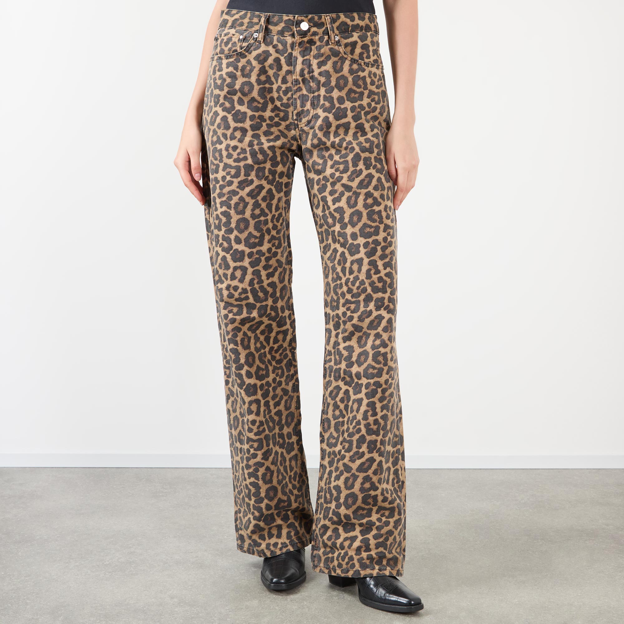 ANINE BING Hugh Leopard Straight Leg Jeans