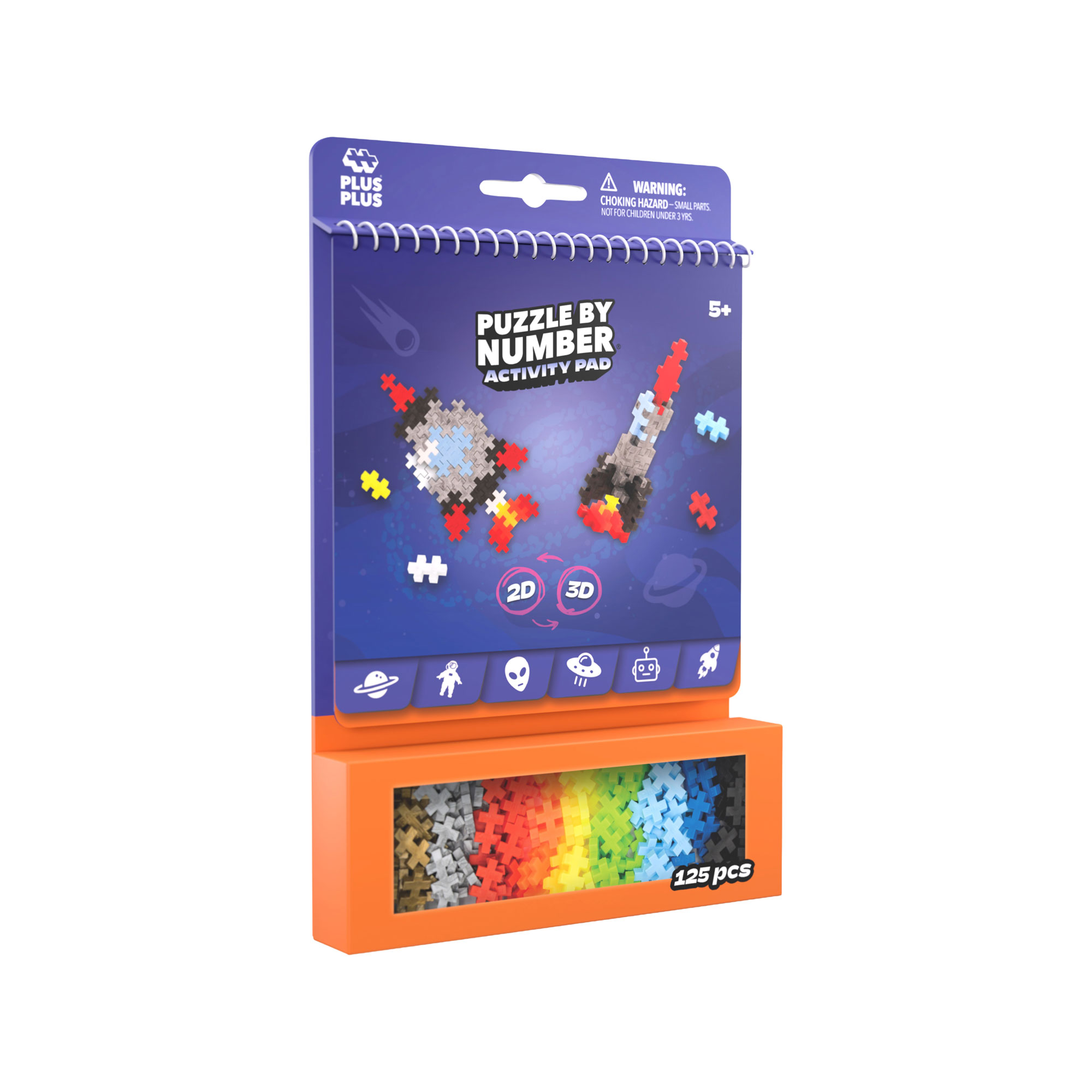 Unleash creativity with the Plus-Plus Space Activity Pad. This set includes 12 exciting activities and 125 pieces to create vibrant 2D Puzzle by Number builds and 3D figures. Perfect for endless imaginative play, whether at home or on the go