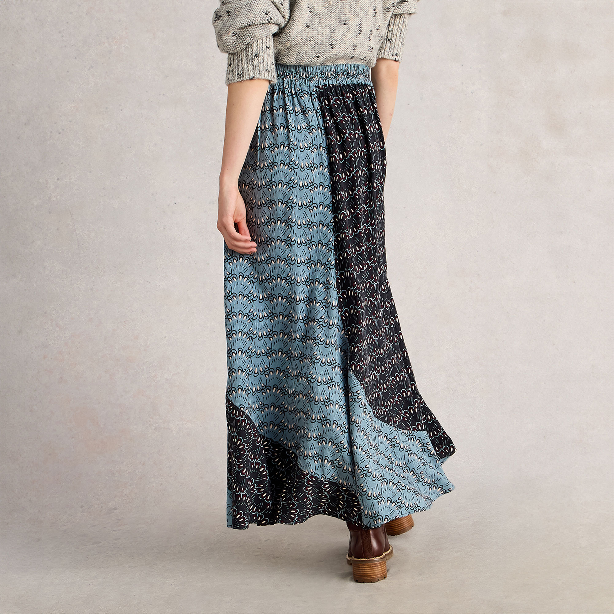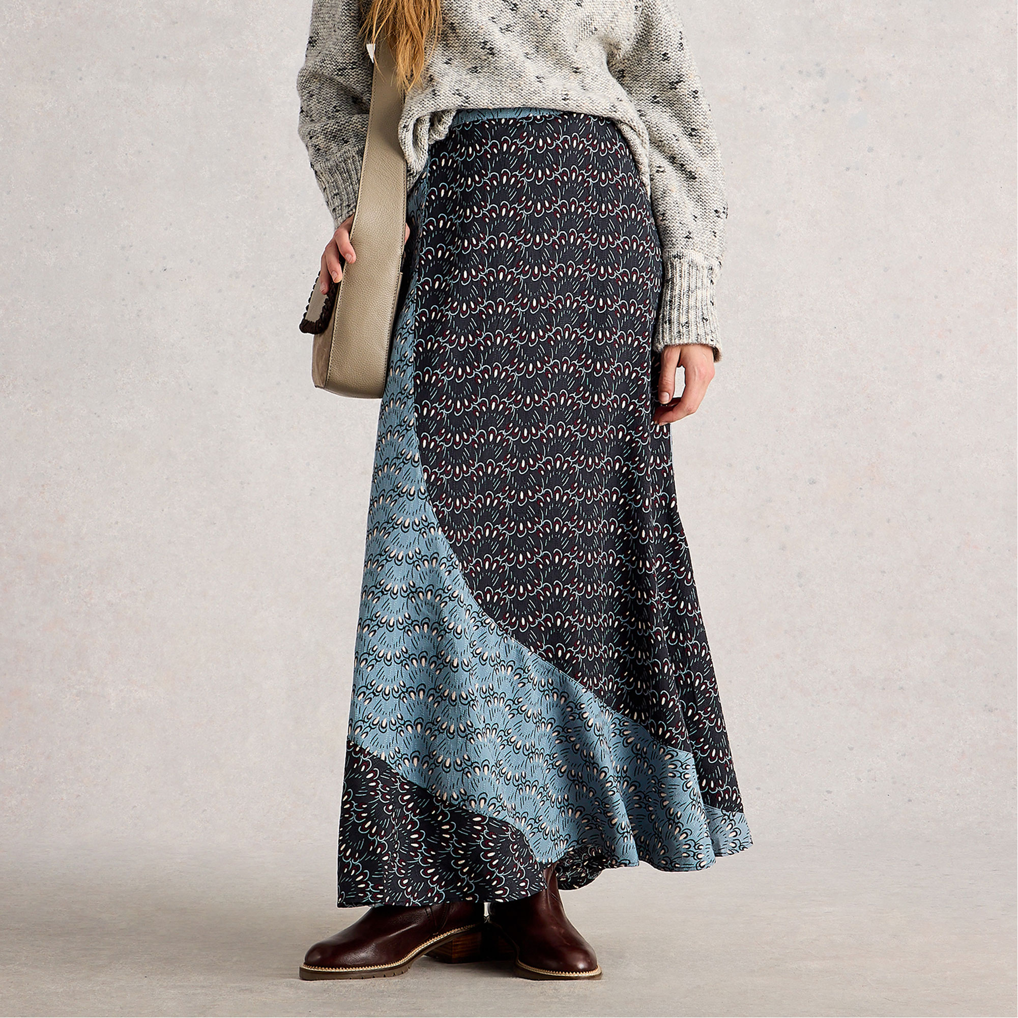 - Bias-cut, maxi length, printed pattern, elasticated waistband