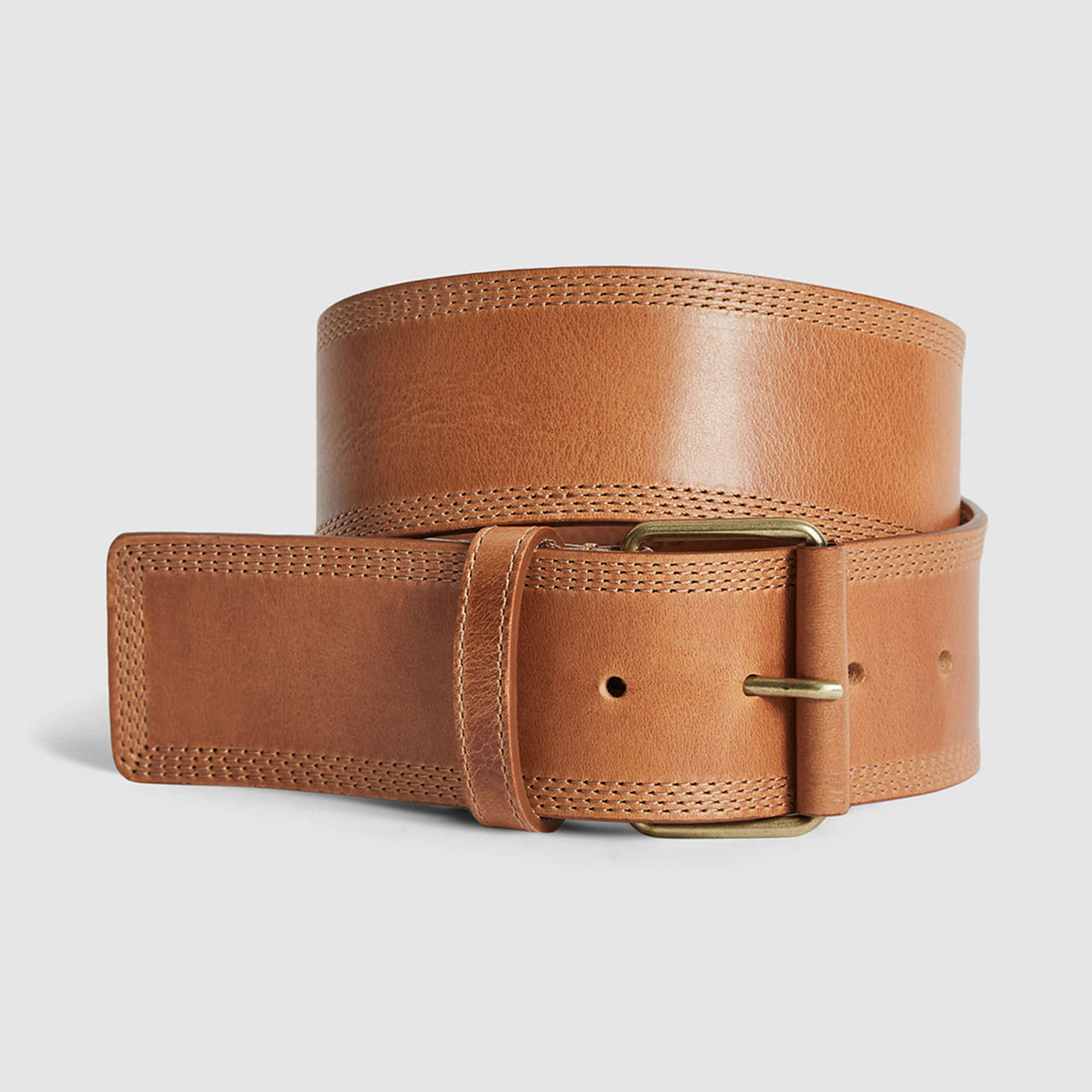 Structured from a smooth leather, this waist belt from Reiss is complete with contrast stitching and a statement square buckle.