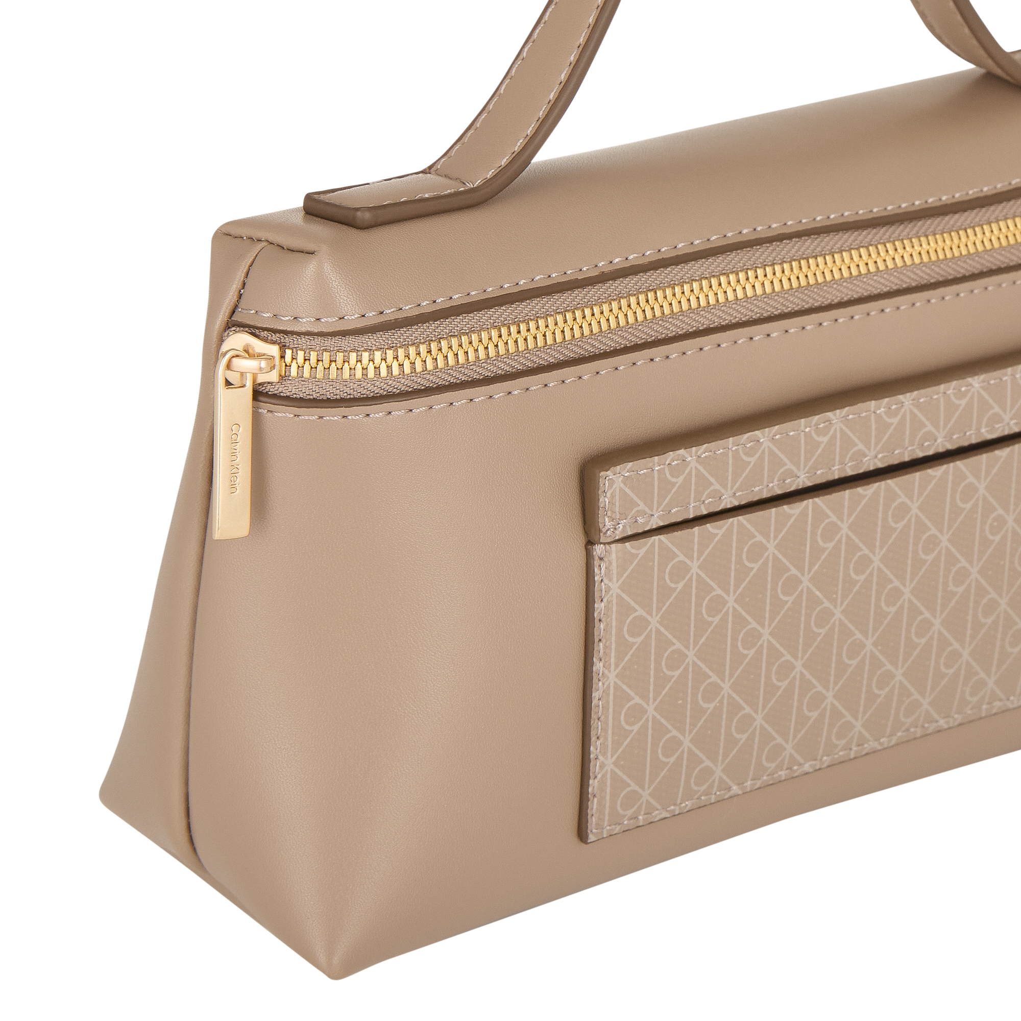 - Top handle, zip fastening, front slip pocket in a monogram print, structured shape, foil logo detail, gold-tone hardware, smooth finish