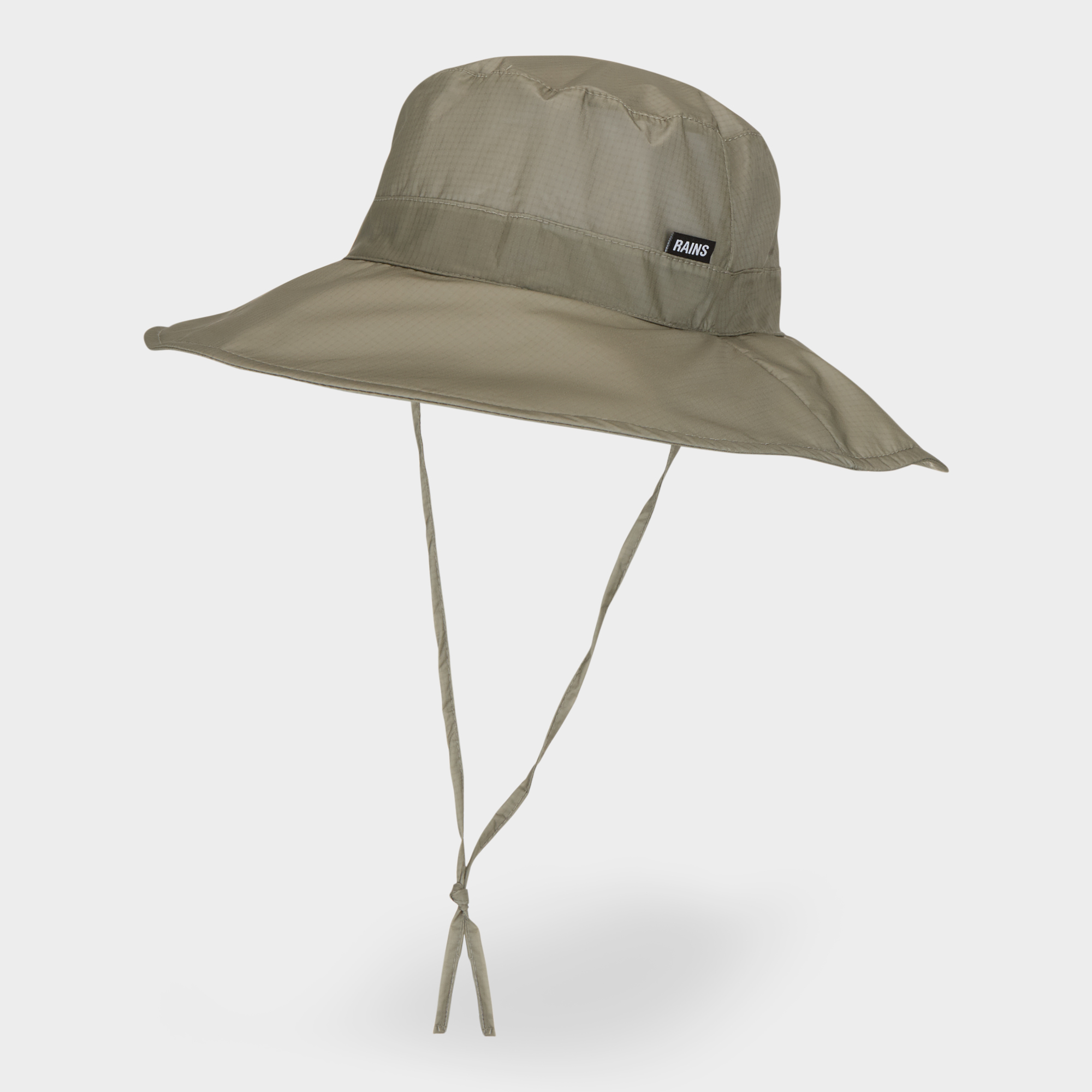 - Bucket style, wide brim, self-tie cords for a secure fit, soft and breathable fabric, PU coating, logo tab