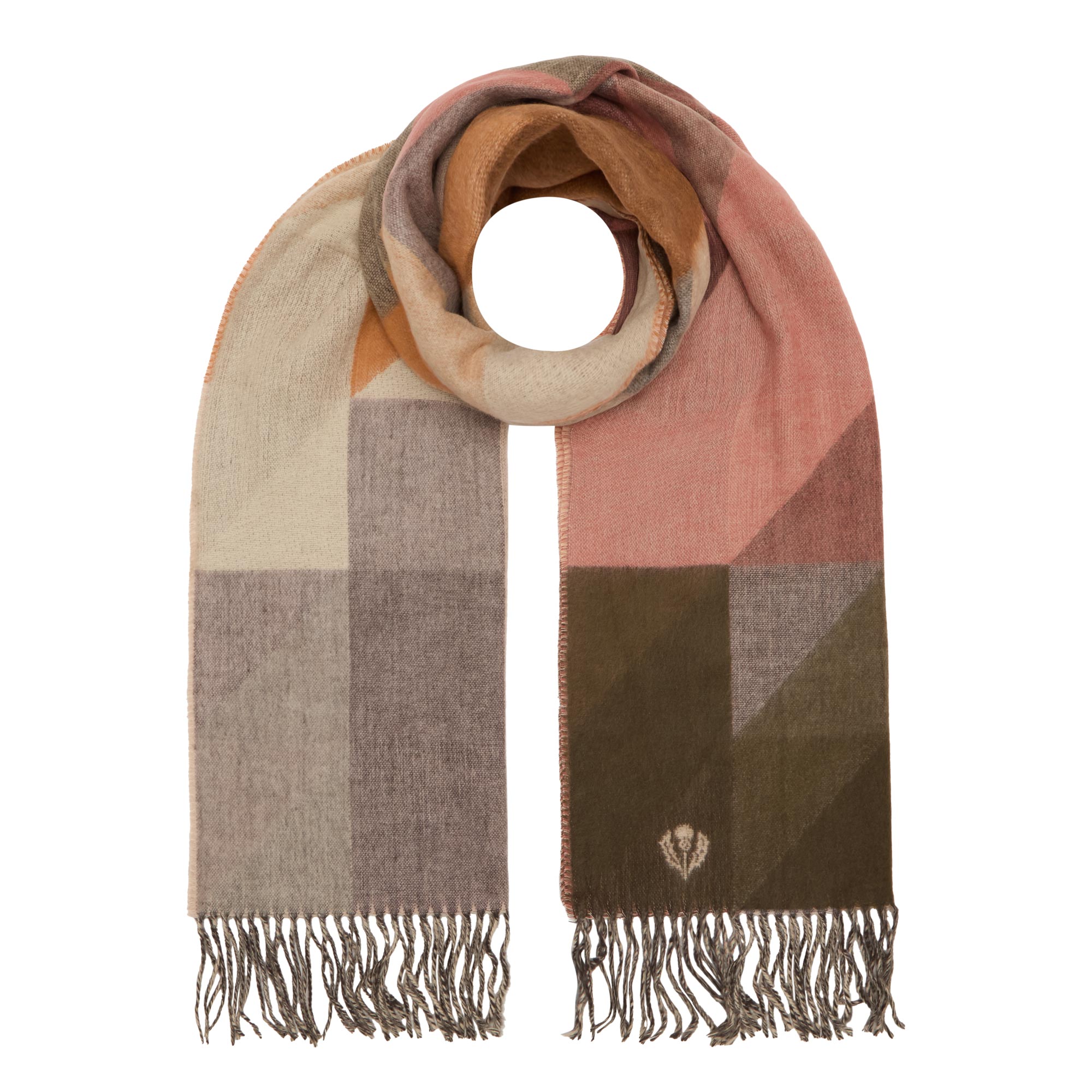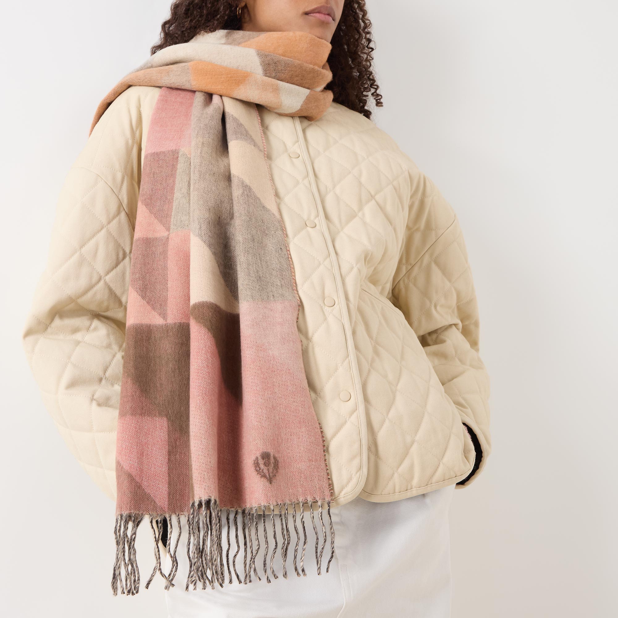 Geometric Fringed Logo Scarf