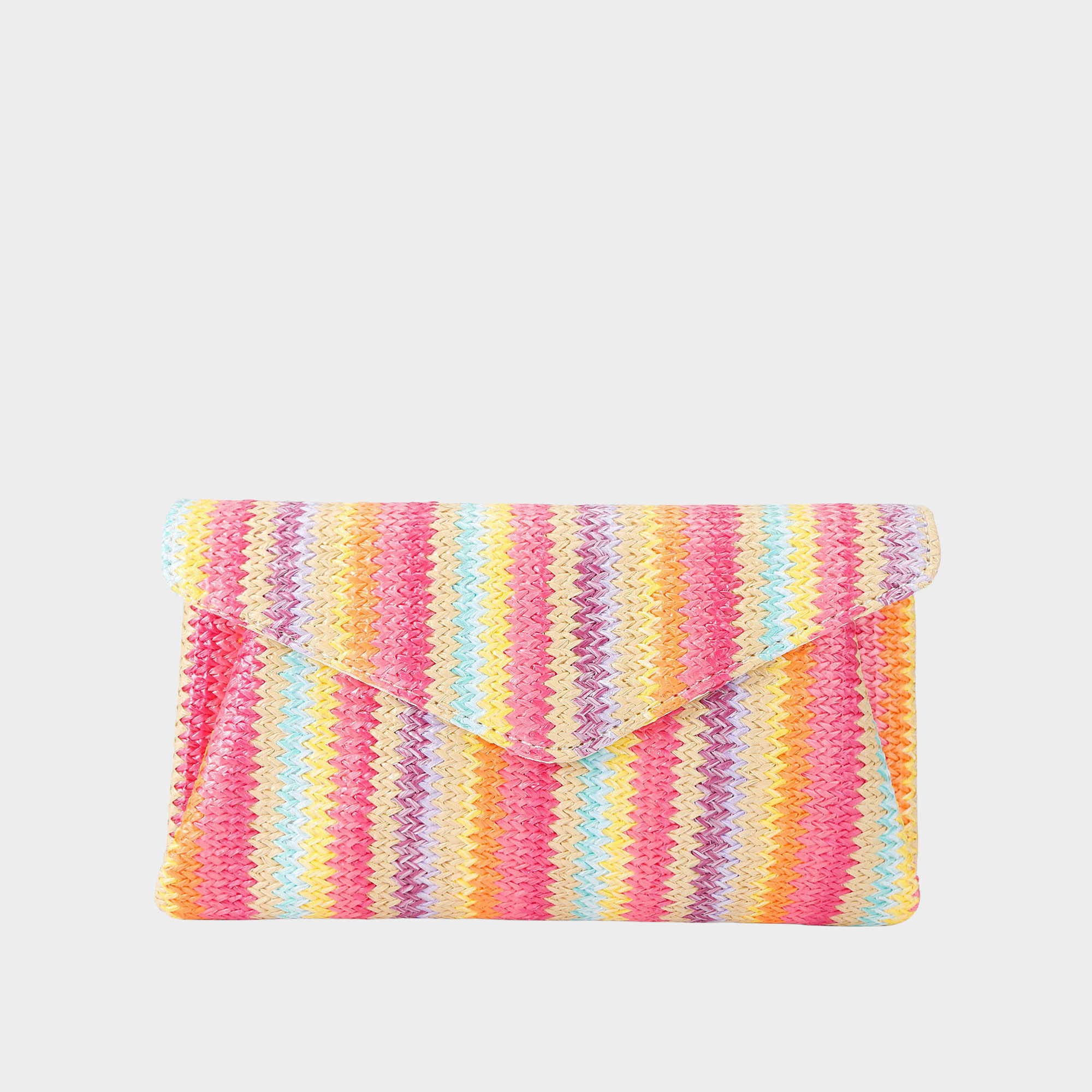- Envelope style, multi-colour raffia exterior, gold-tone branding detail, removable chain strap, fits phones up to 6-inches