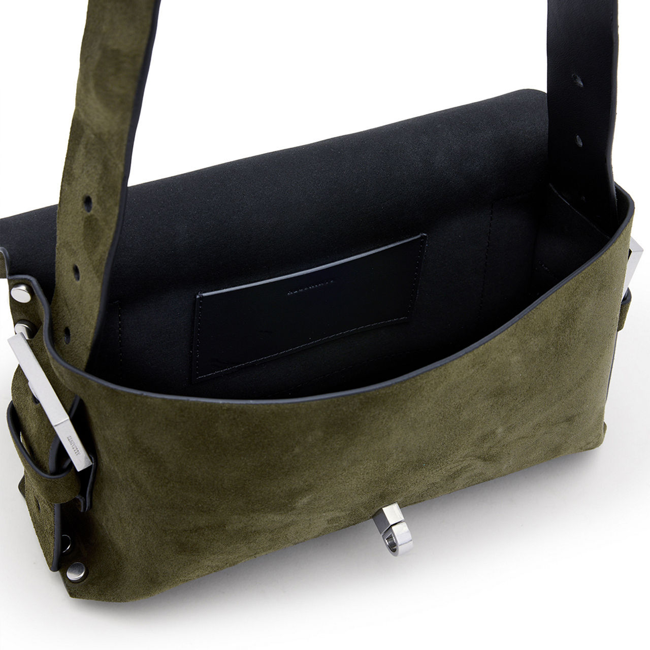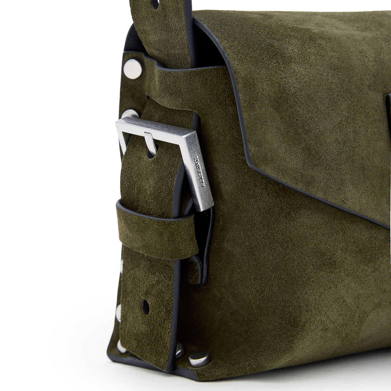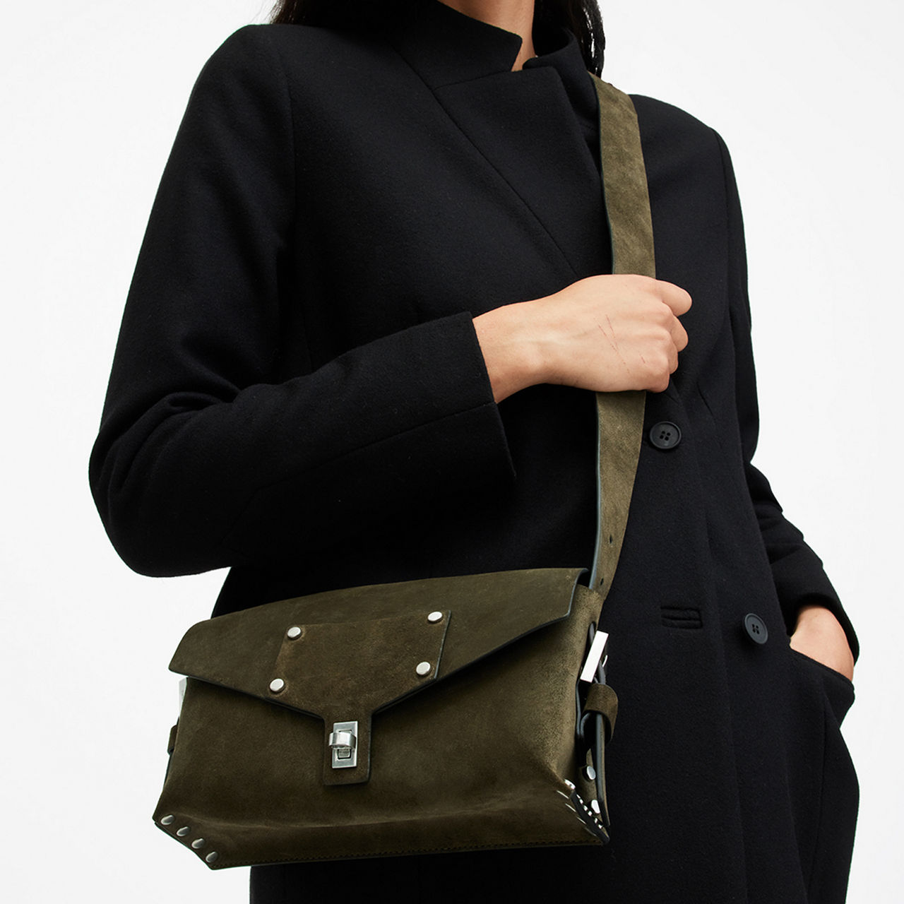 ALLSAINTS Miro Turn-Lock Suede Satchel
