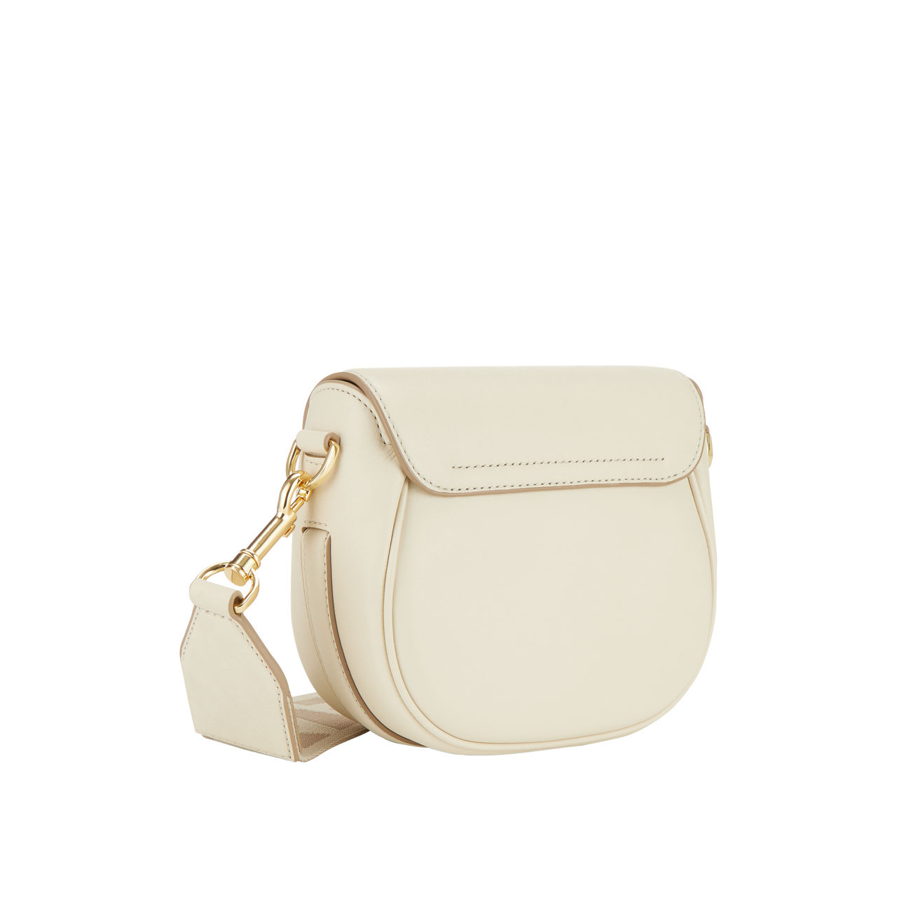 - Flap fastening with magnetic button closure, grained finish, gold-toned hardware, branded adjustable crossbody strap, logo detail