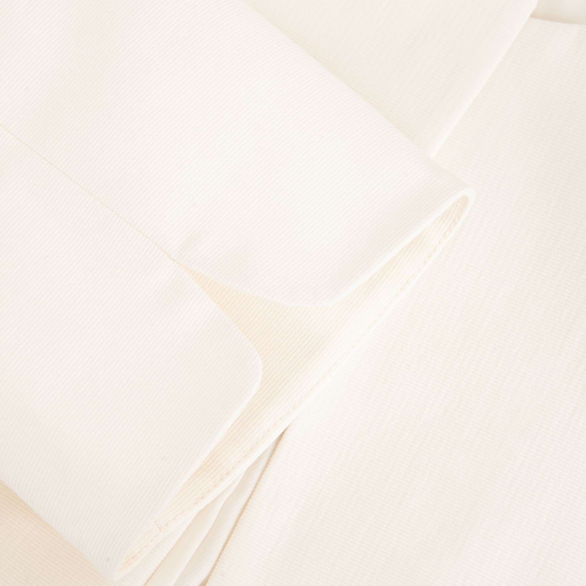 - Composition and Care: 56% cotton, 3% elastane, 41% polyester. Dry clean