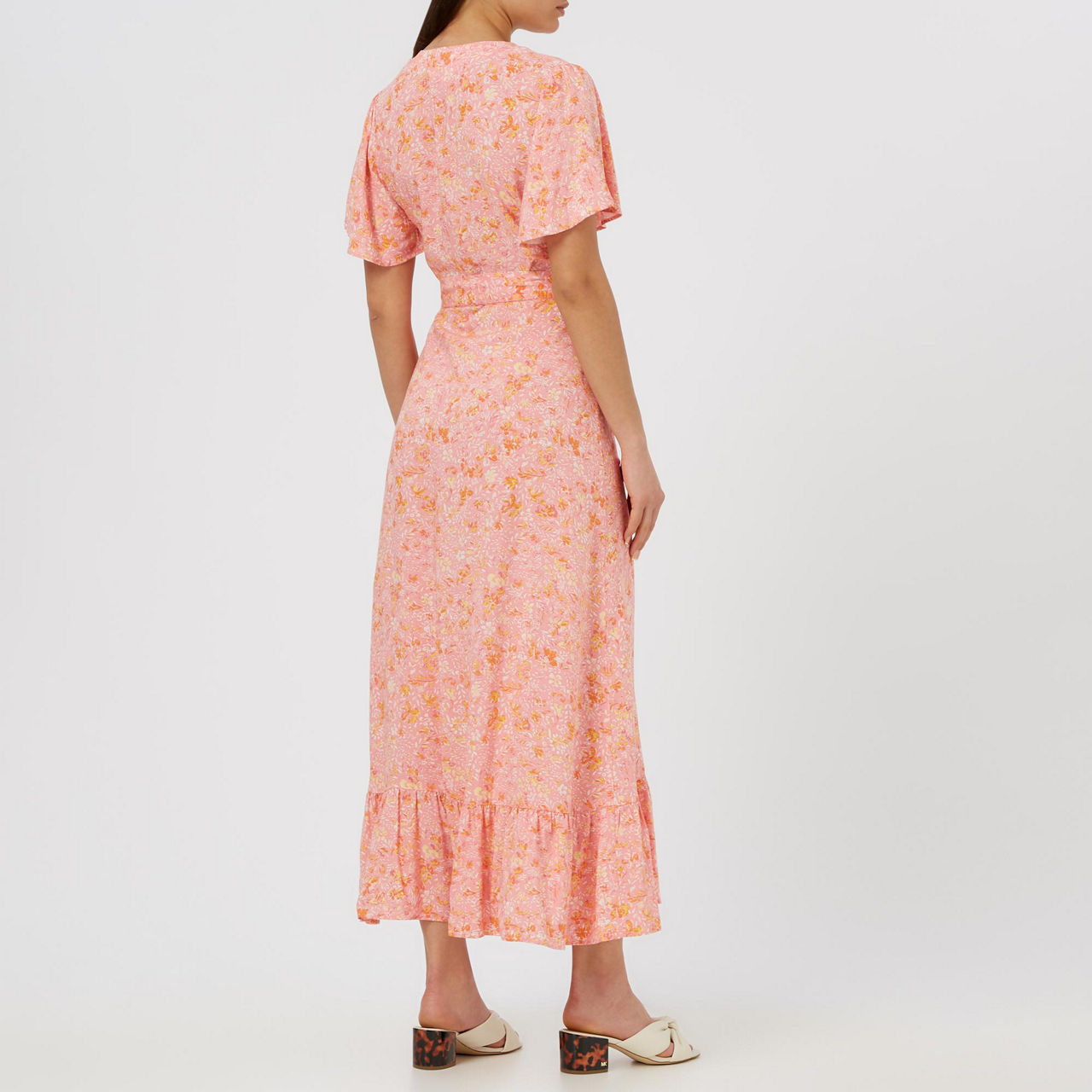 Part Two's SS22 collection is brimming with whimsical designs and the Clarina dress is no exception. Printed with florals, the wrap style is shaped with a flattering v-neck before falling to a flowing, maxi length with a playful ruffled trim.