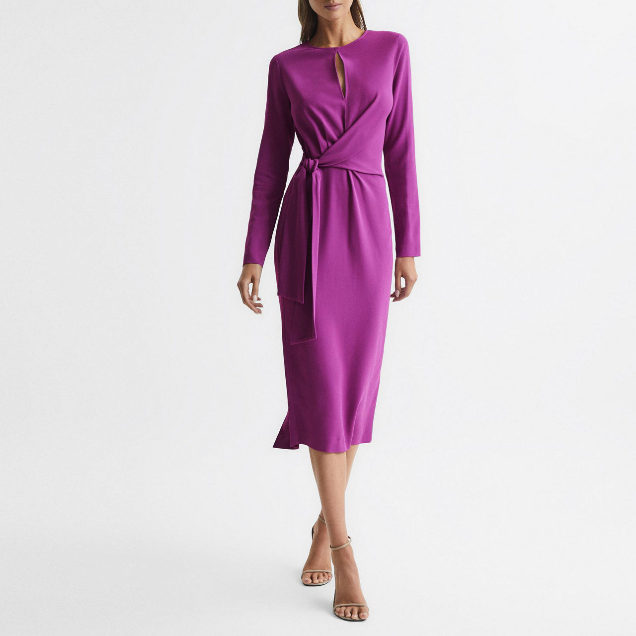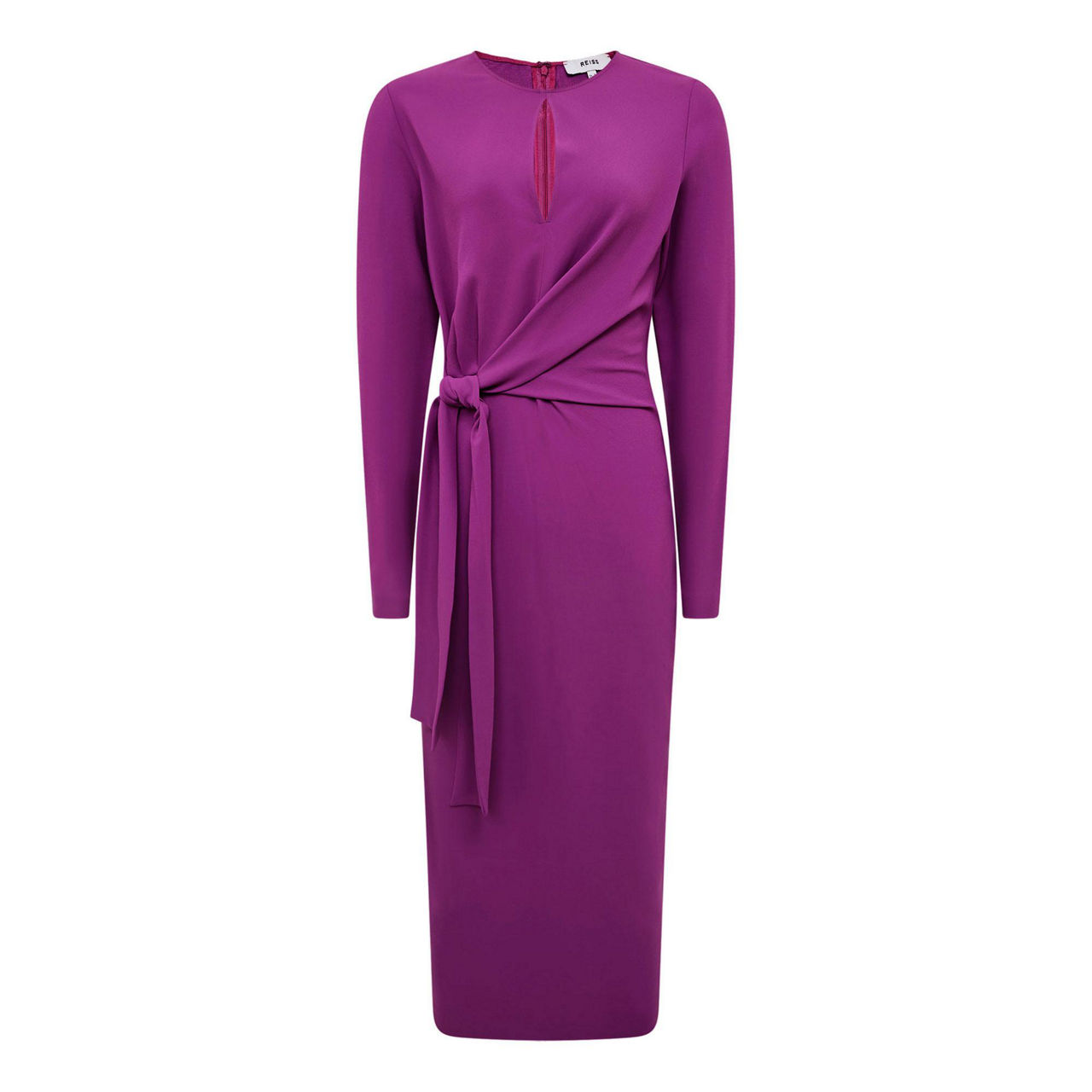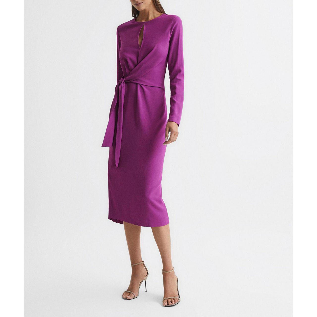 Embrace Reiss' pared-back take on evening glamour with the Valentina dress. Designed to a form-fitting silhouette, the midi length dress works a tie detail to accentuate the waist and a subtle cut-out to the front. Style with heels and a matching bag for effortless elegance.