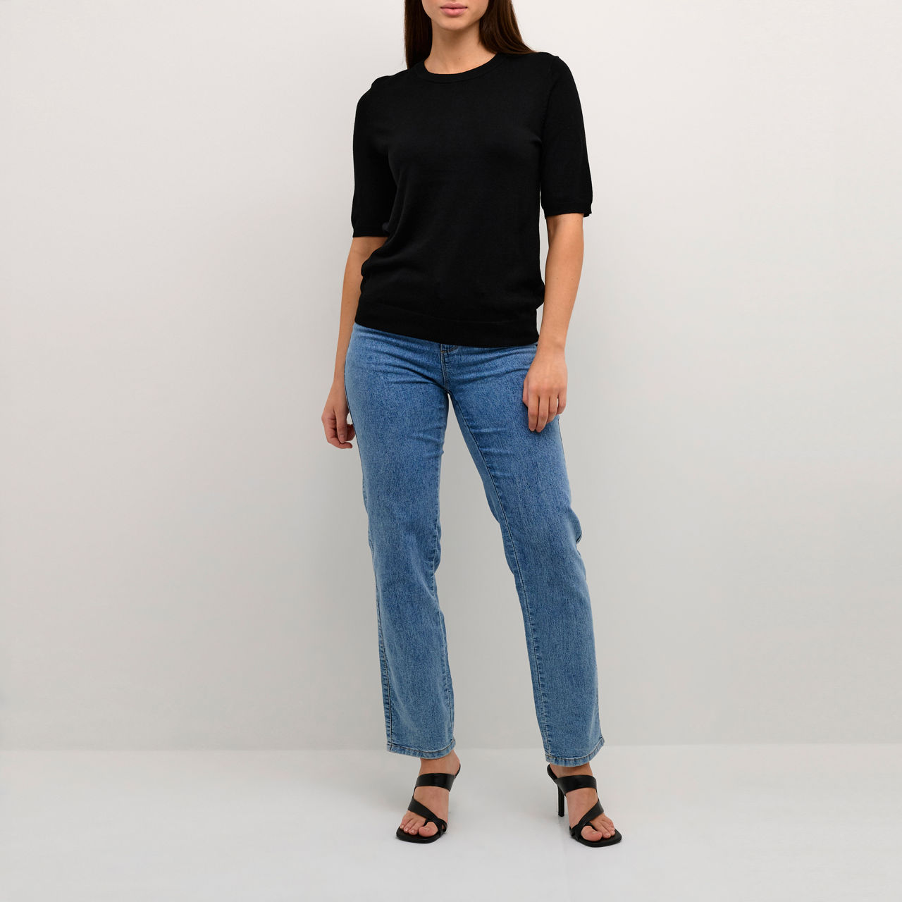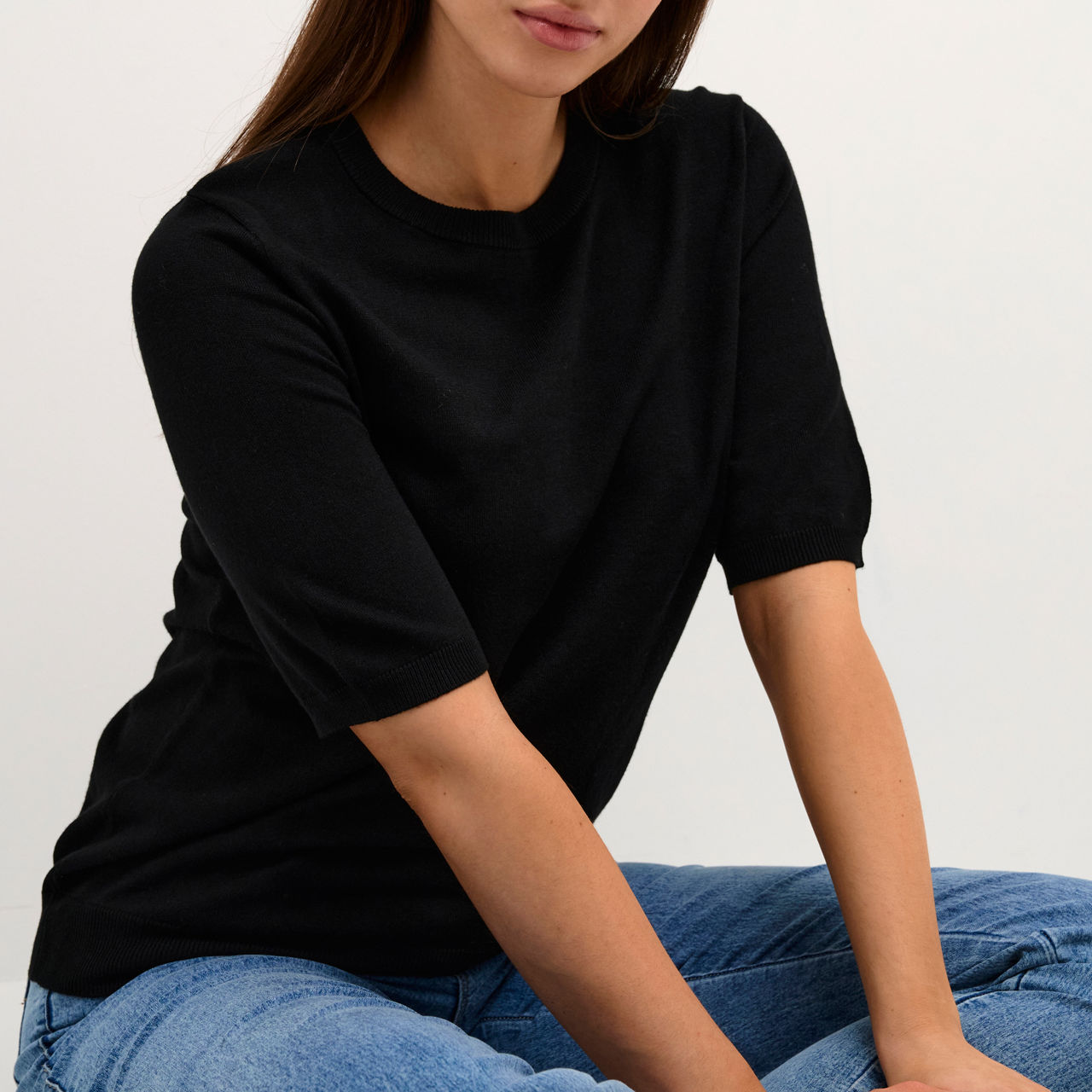 - Round neck, short sleeves, straight hem, ribbed trims, soft finish