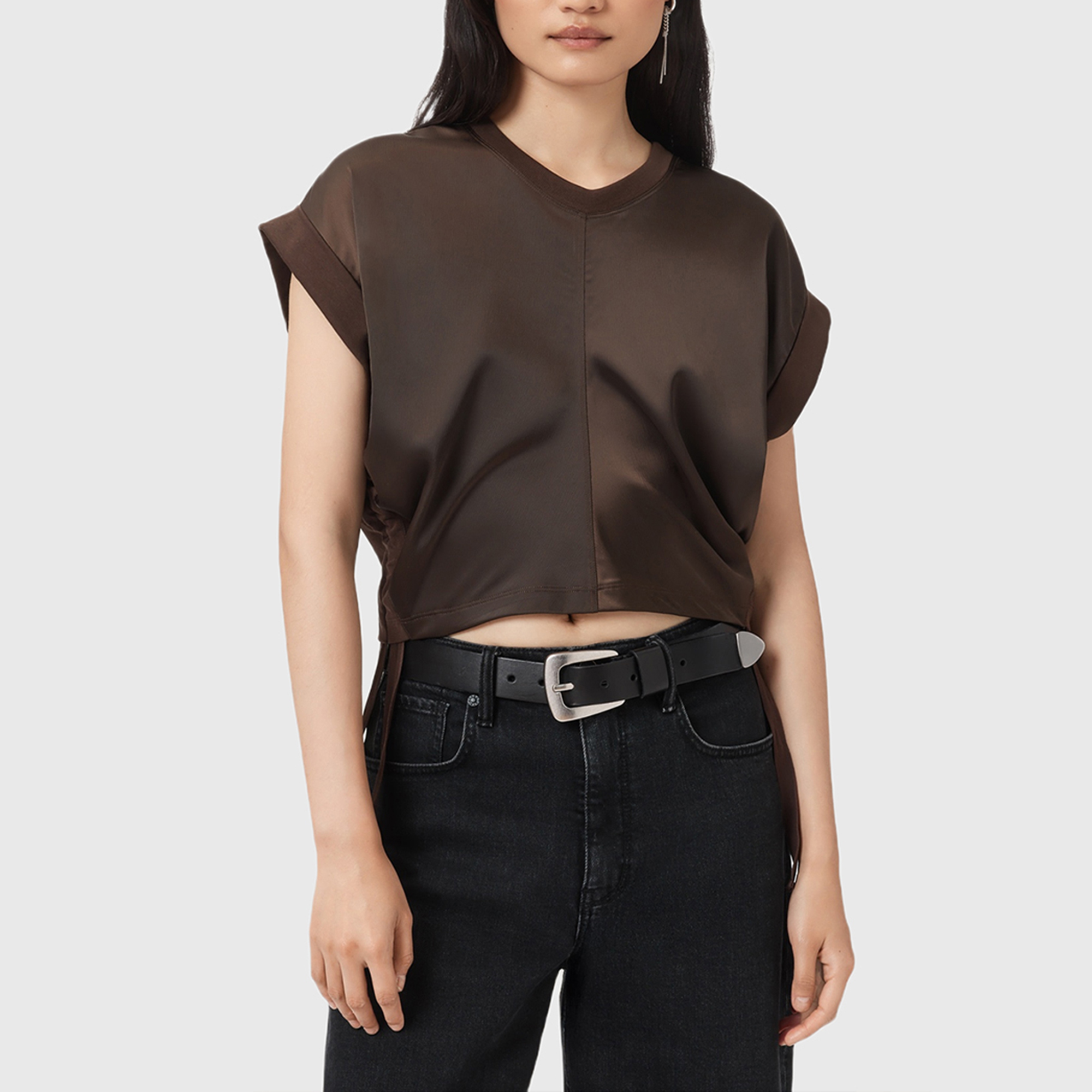 ALLSAINTS Mira Drawstring Satin Panel T-Shirt
