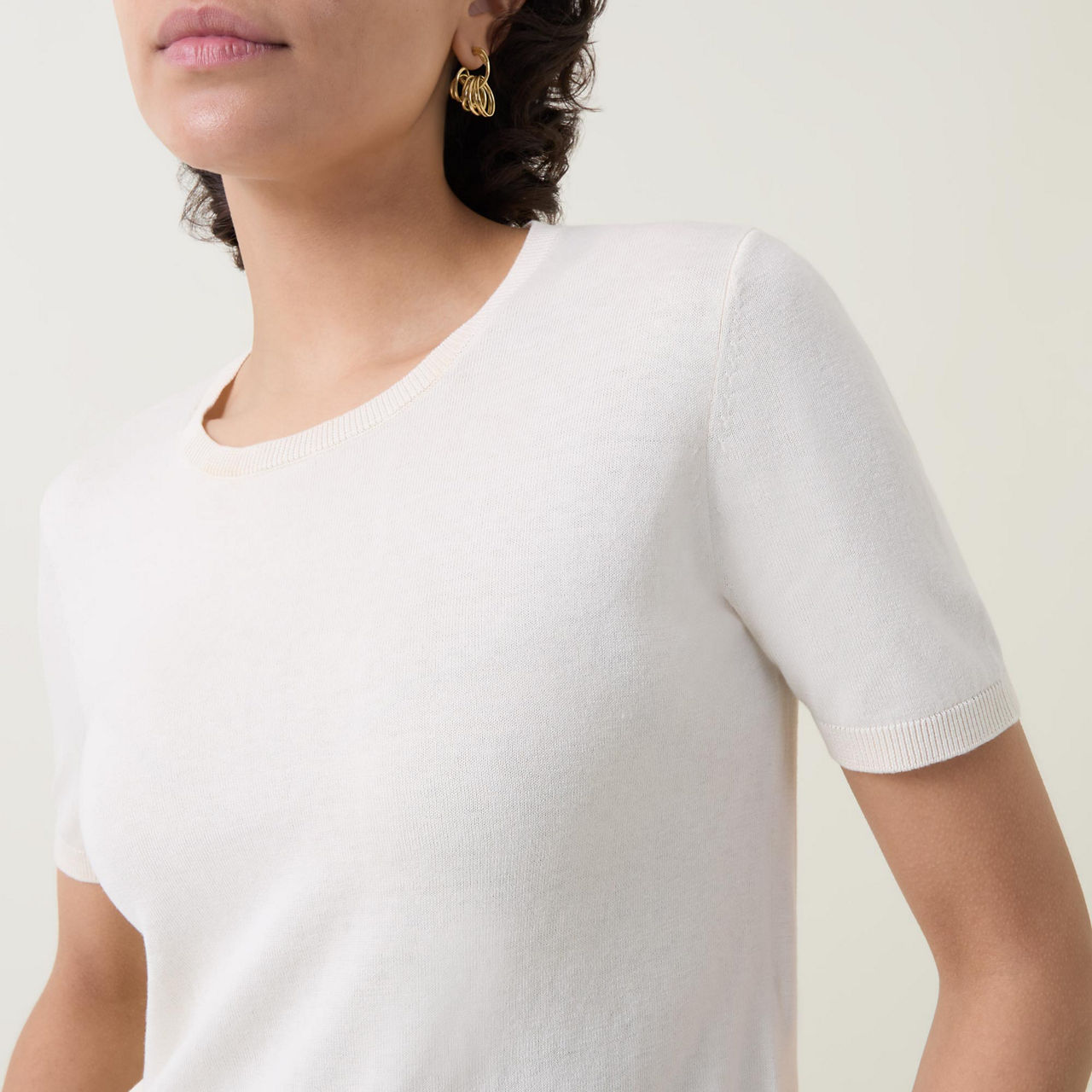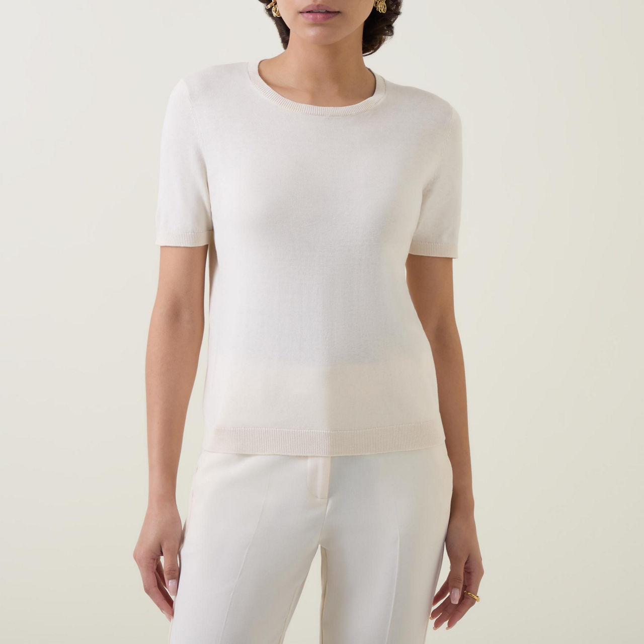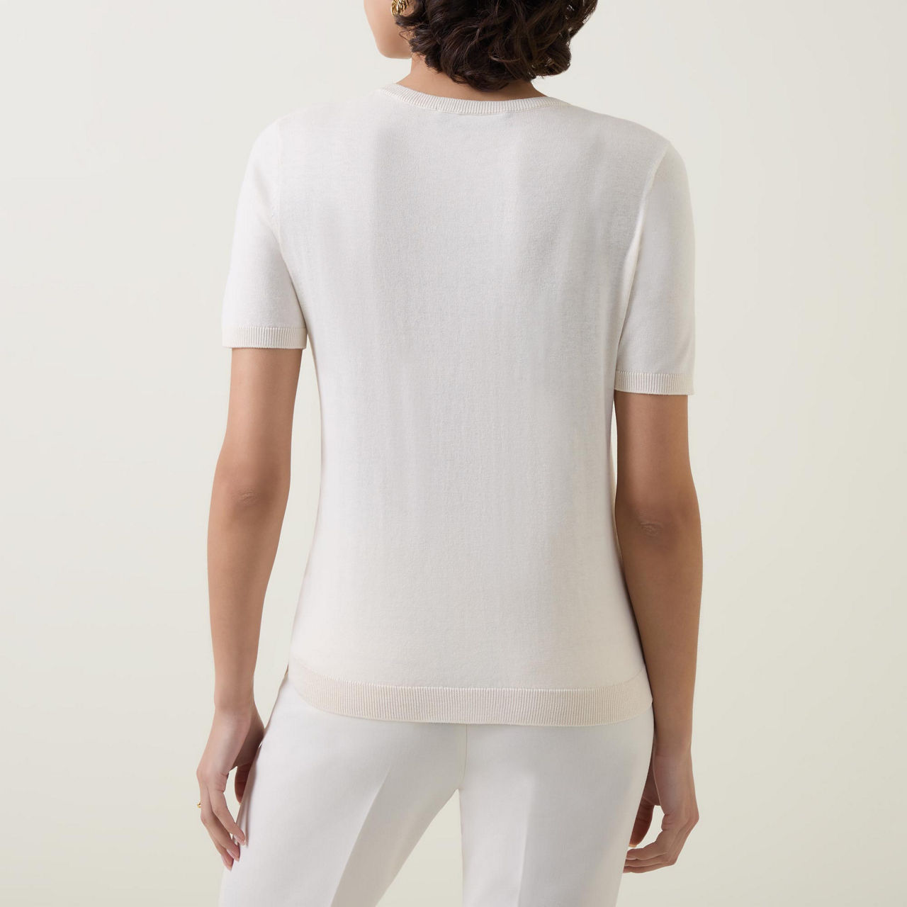 - Round neckline, straight hemline, soft touch, ribbed trims