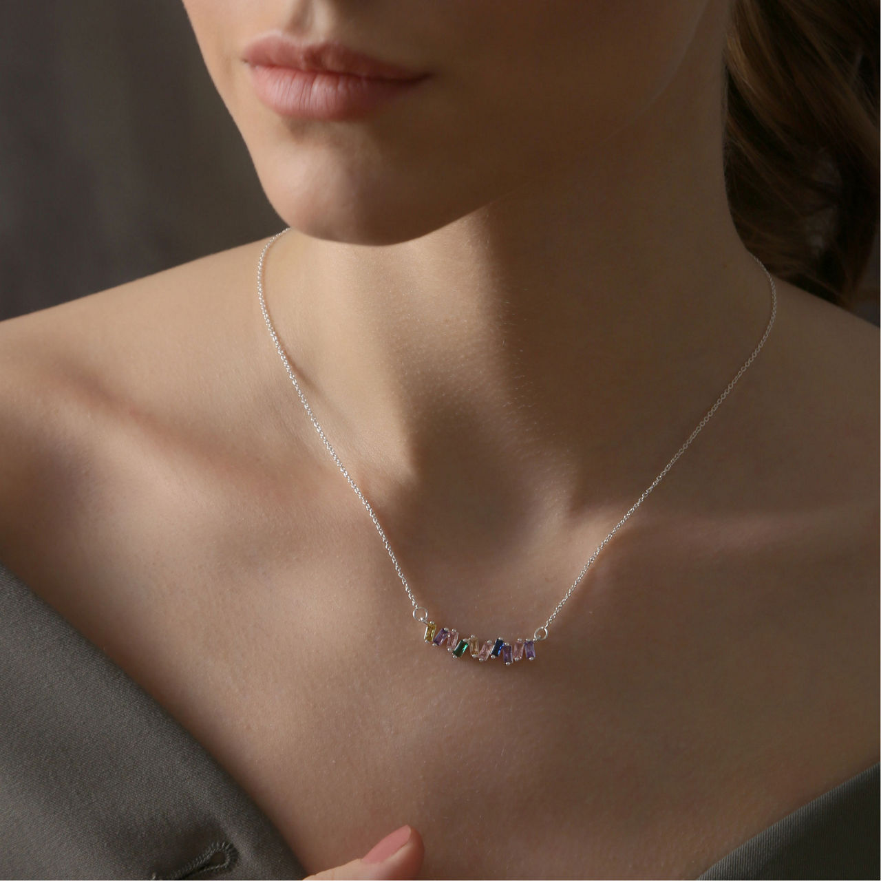 - Adjustable length, silver-plated, protective anti-tarnish layer, coloured stone settings, presented in a branded gift box