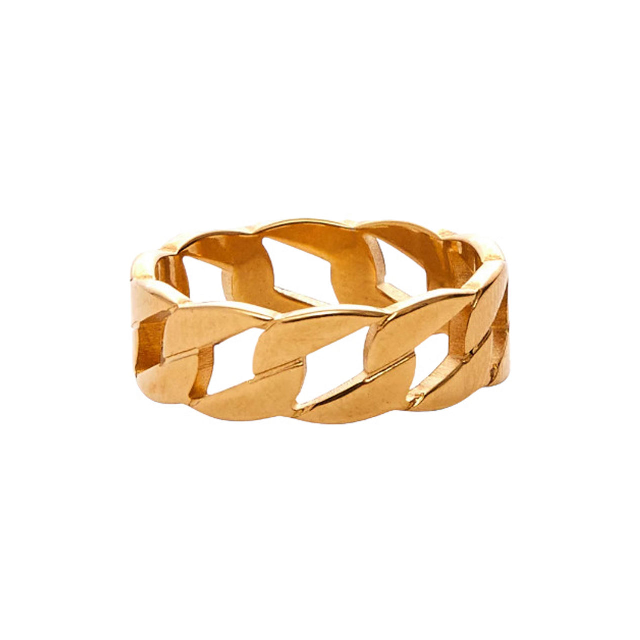 - Band style, chain link shape, gold-plated, tarnish resistant, stackable, presented in a gift box
