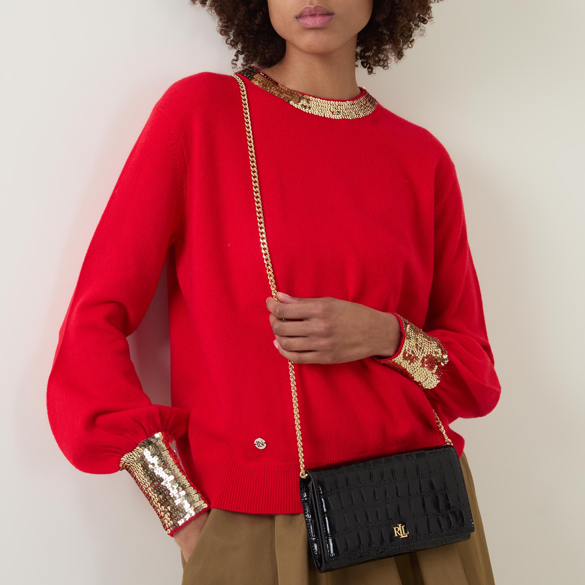 LAUREN Adair Large Chain Croc Embossed Clutch